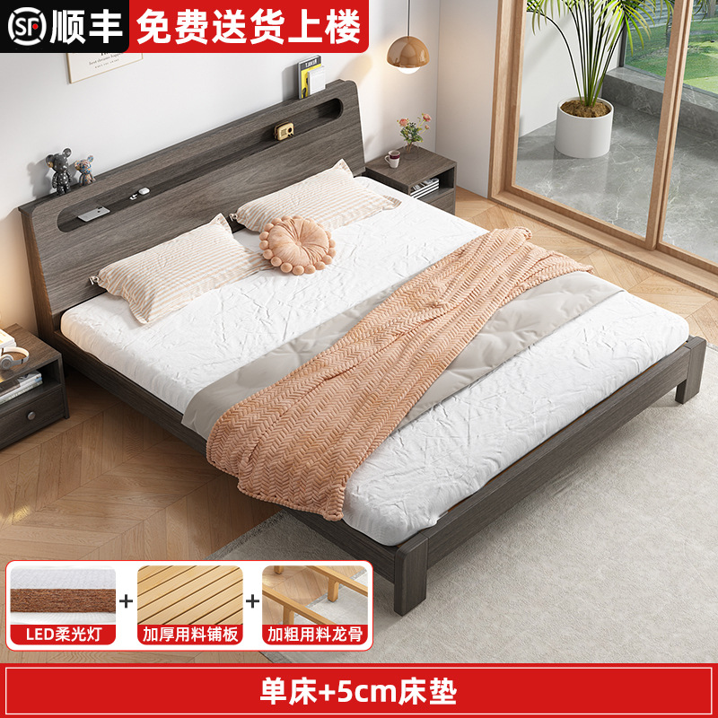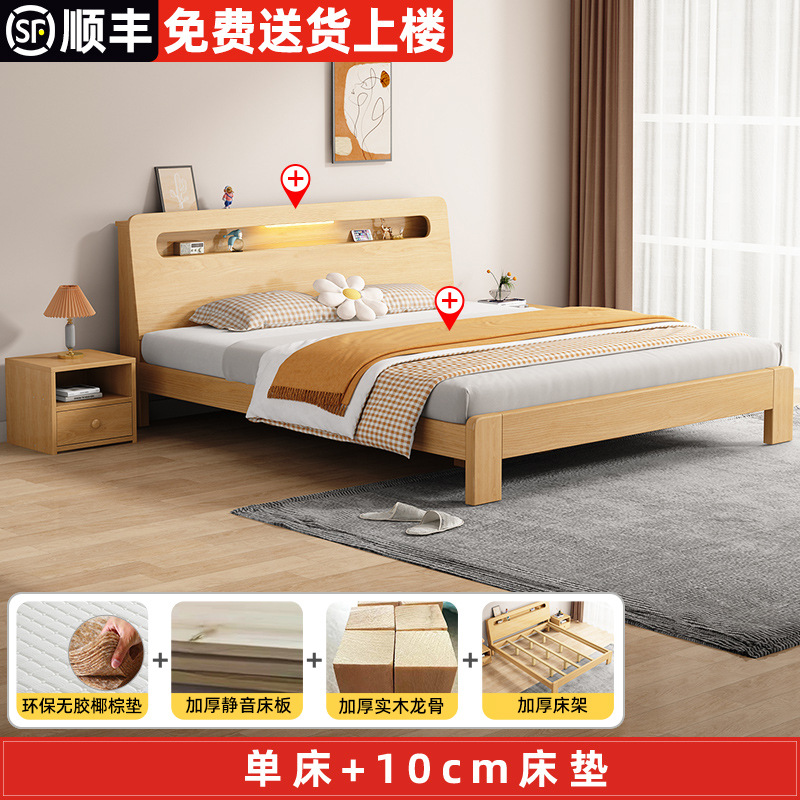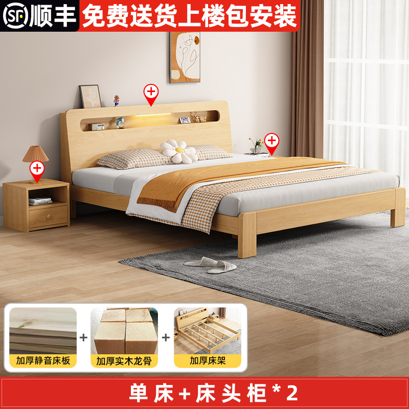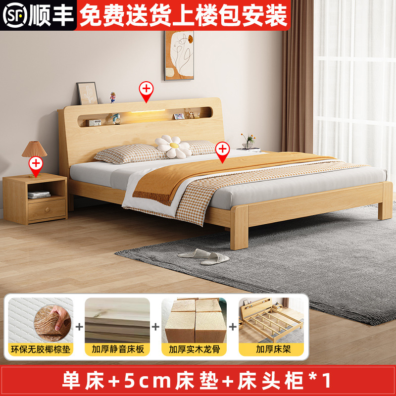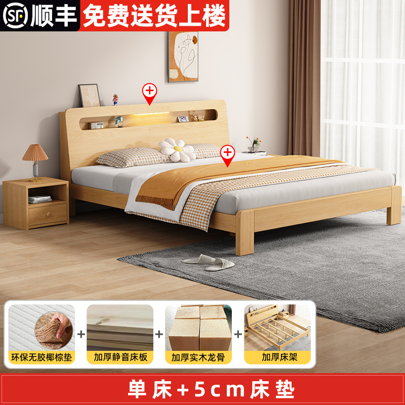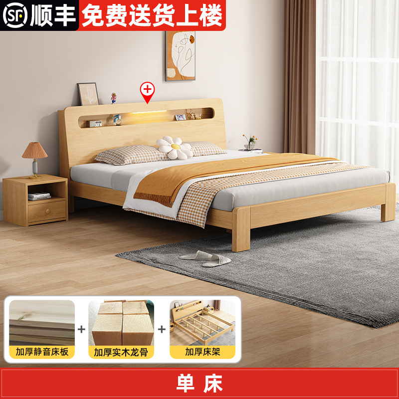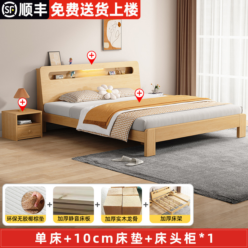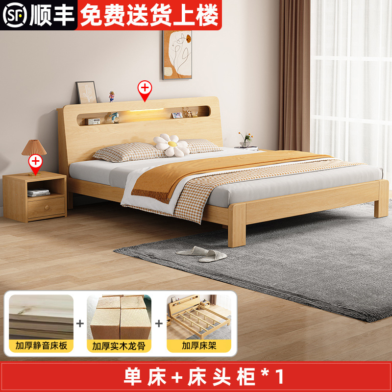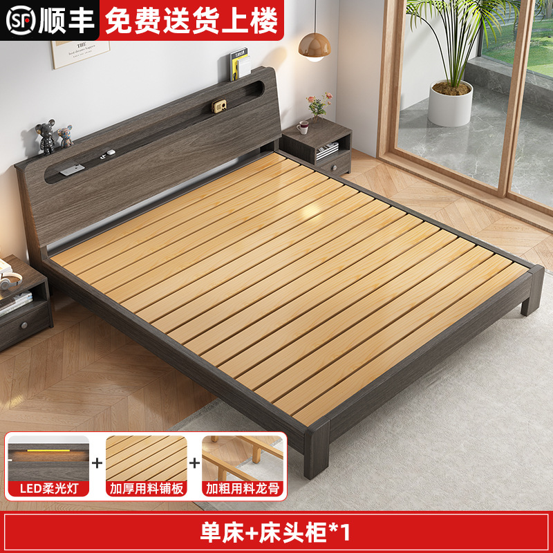 단단한 나무 침대 더블 침대 현대적인 간단한 싱글 침대 1.2 미터 마스터 침실 1.8 미터 1.5 침대 프레임이있는 단단한 나무 임대 룸스토어 가기