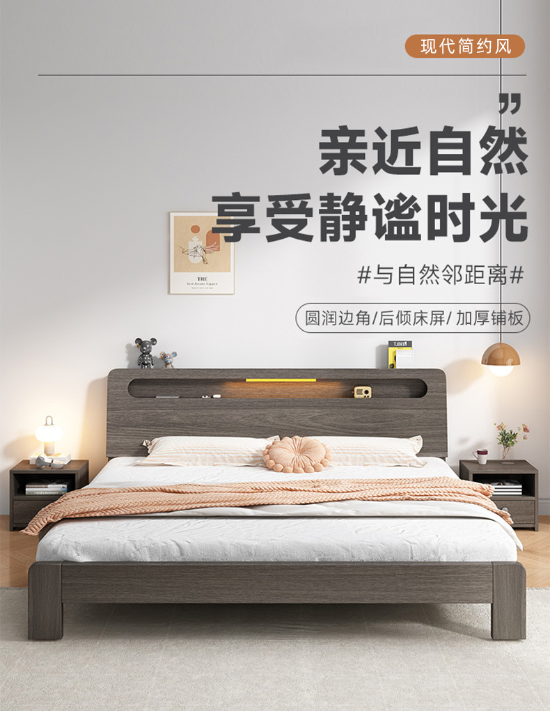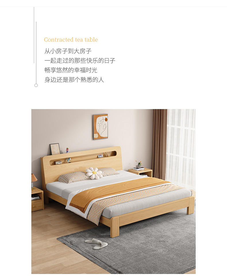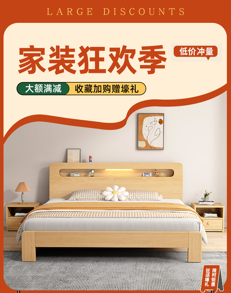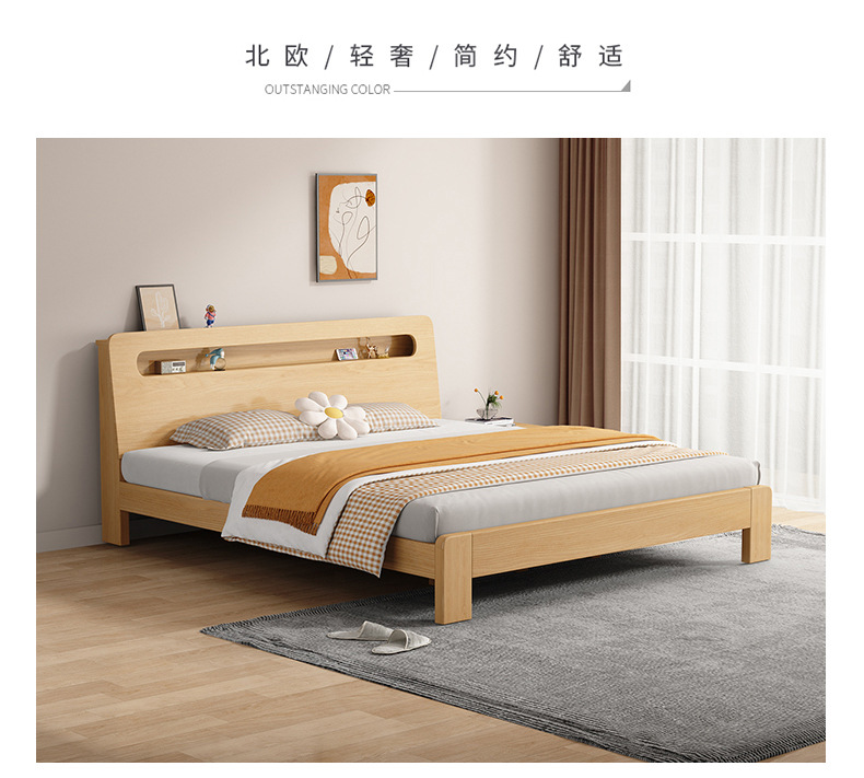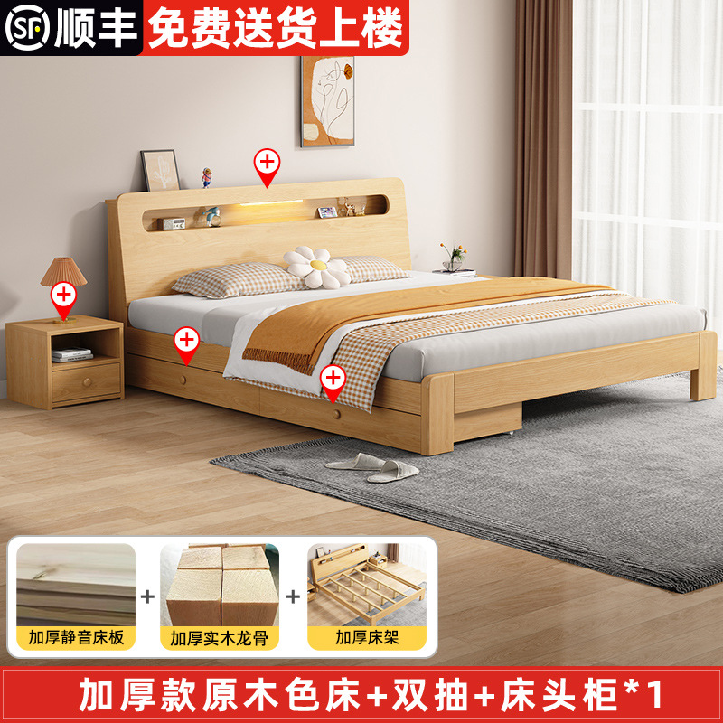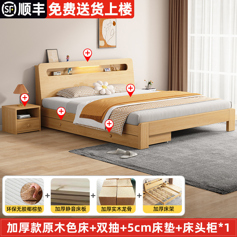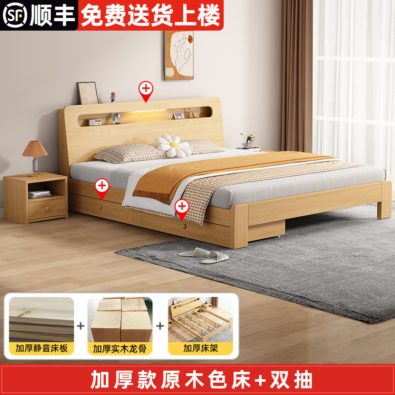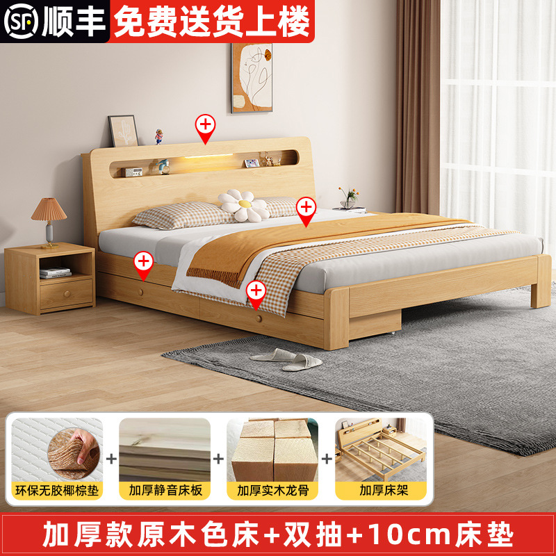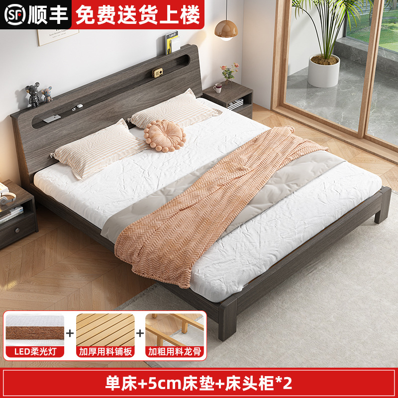 단단한 나무 침대 더블 침대 현대적인 간단한 싱글 침대 1.2 미터 마스터 침실 1.8 미터 1.5 침대 프레임이있는 단단한 나무 임대 룸스토어 가기