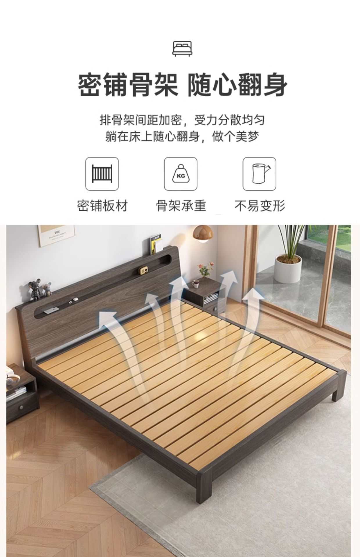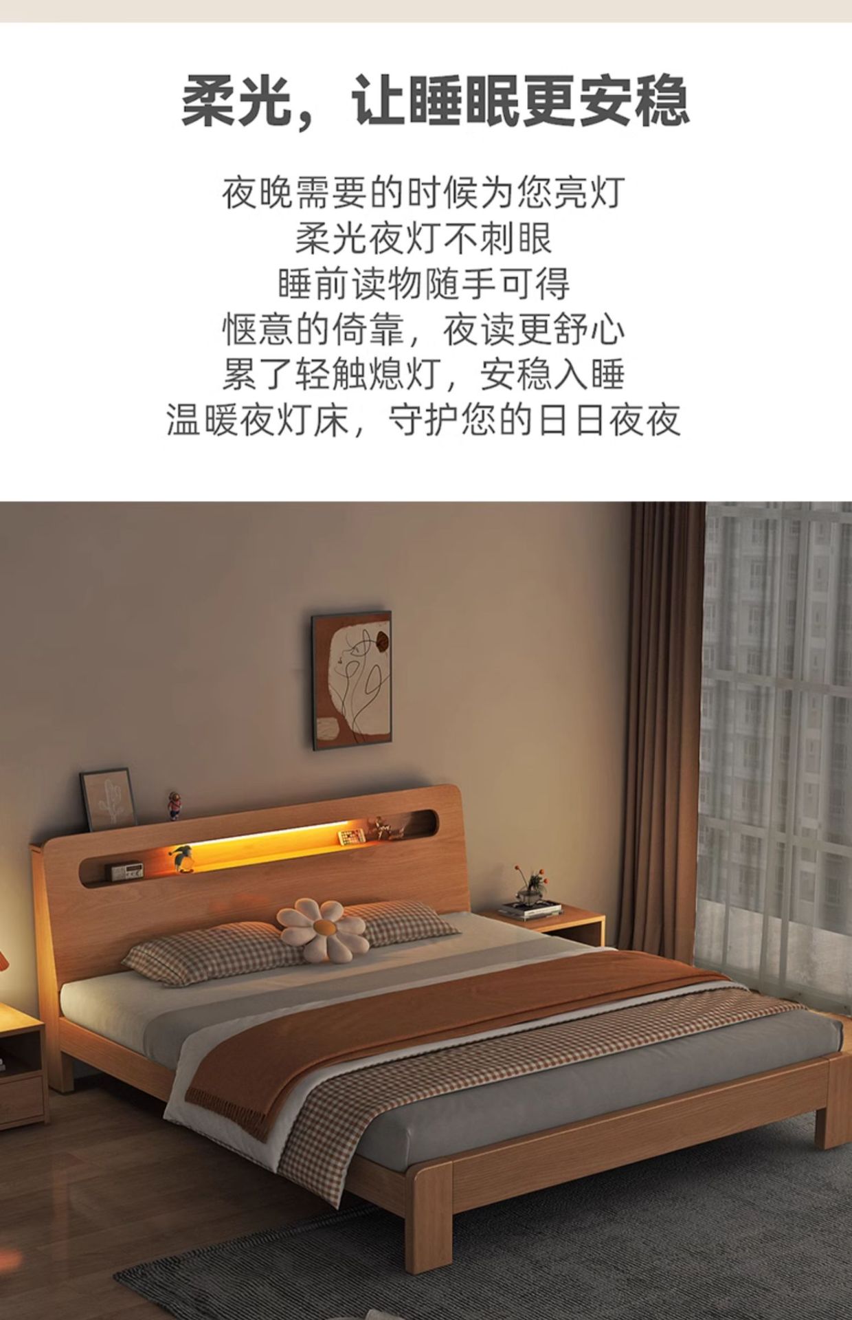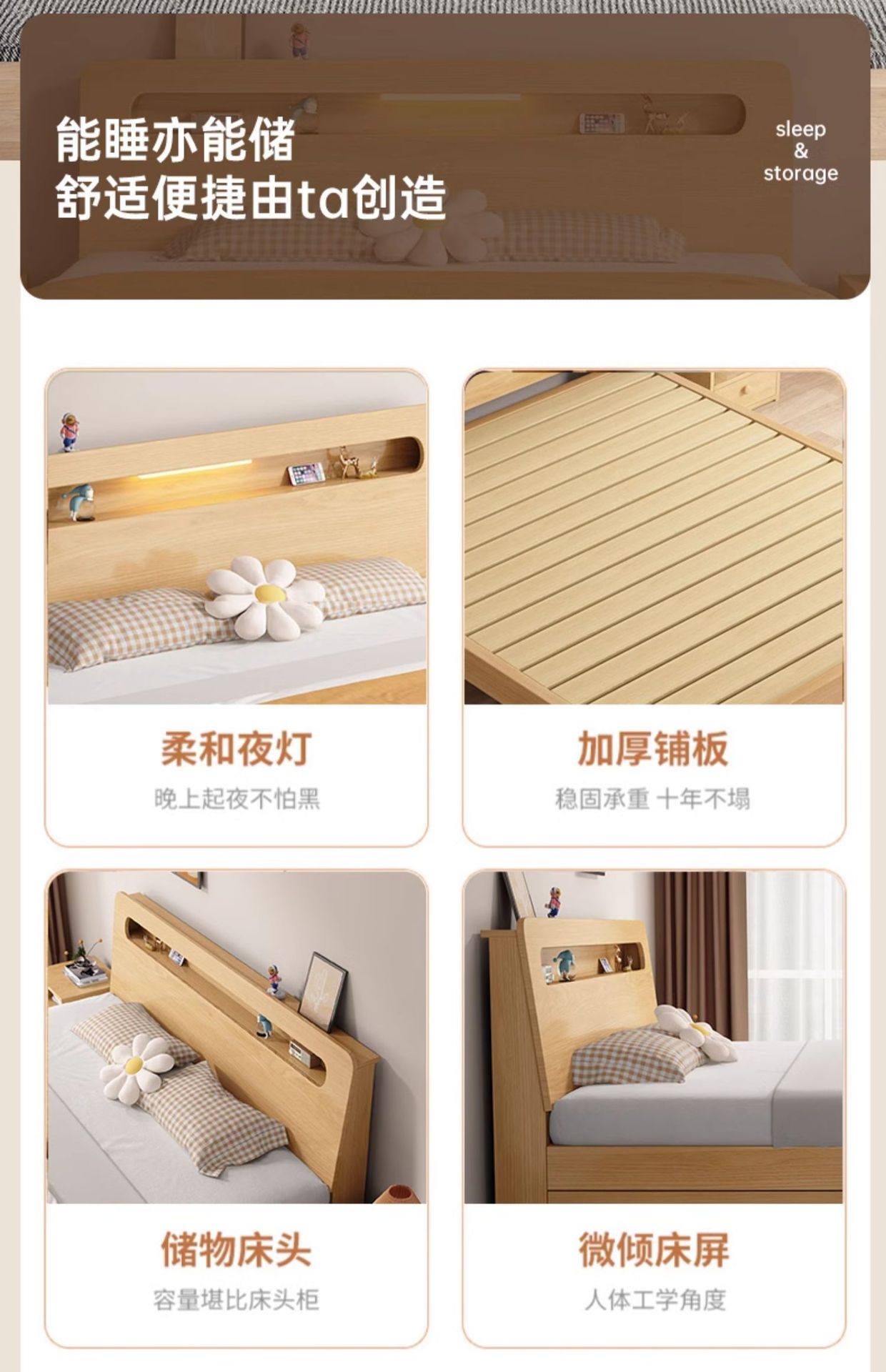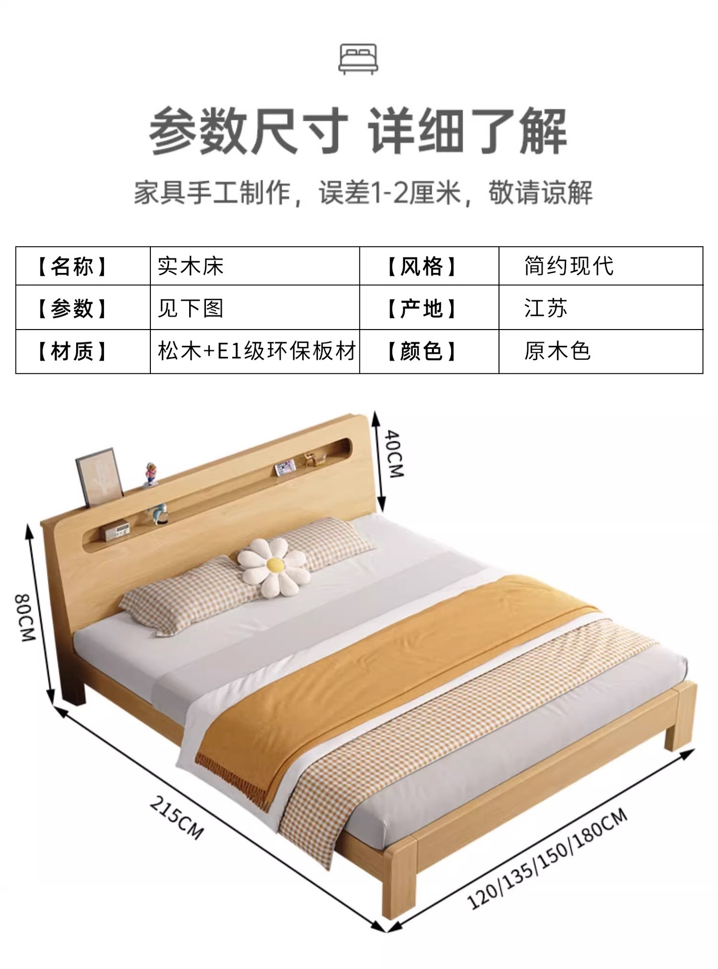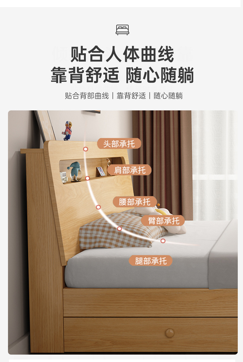• 원목 컬러 싱글 침대 + 침대 옆 탁자 * 1 [위층으로 배송] 두껍고 환경 친화적입니다.