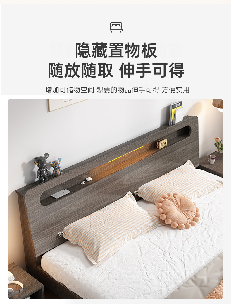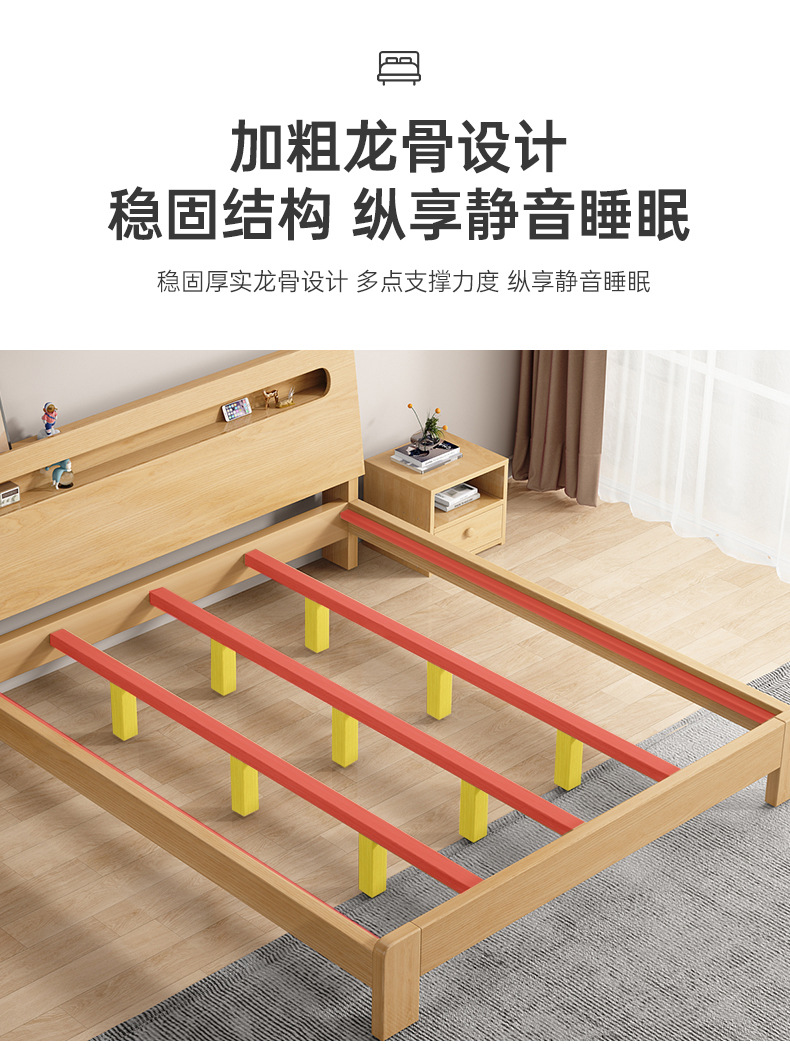 단단한 나무 침대 더블 침대 현대적인 간단한 싱글 침대 1.2 미터 마스터 침실 1.8 미터 1.5 침대 프레임이있는 단단한 나무 임대 룸