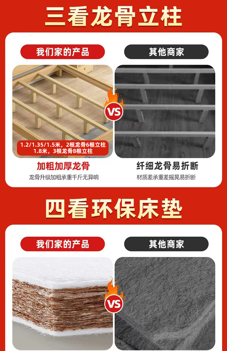 • 우드 컬러 싱글 침대 + 5cm 매트리스 + 침대 옆 탁자 * 1 [위층으로 배송] 두껍고 환경 친화적입니다.