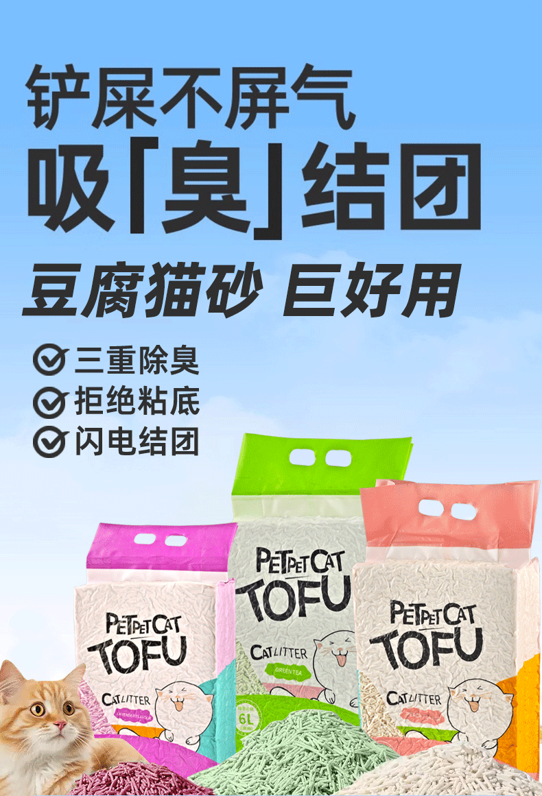 고양이 모래 두부 탈취제 6L 흡수성 고양이 모래 단단한 덩어리 다양한 향 식물성 순수 두부 고양이 모래 애완용품스토어 가기