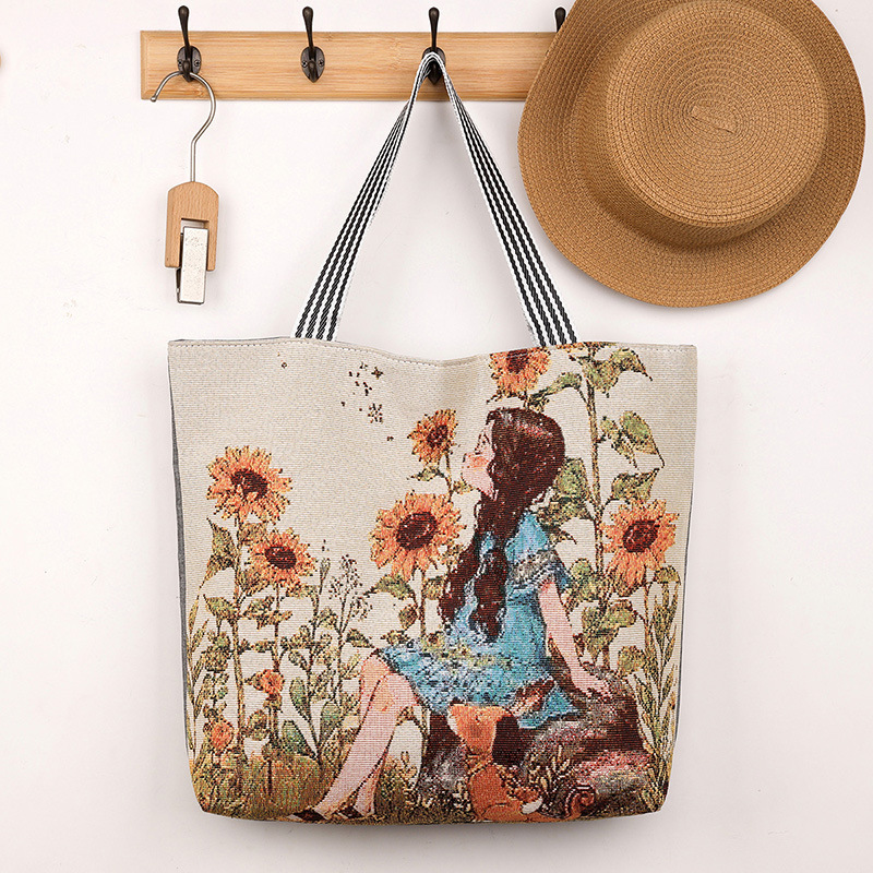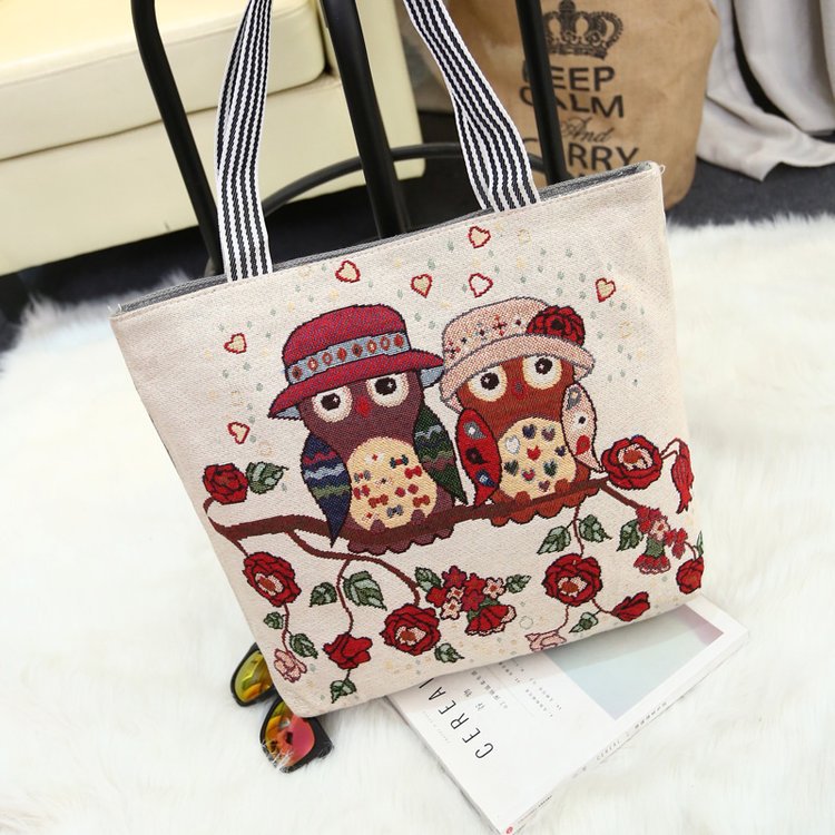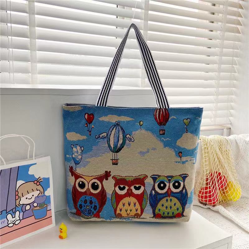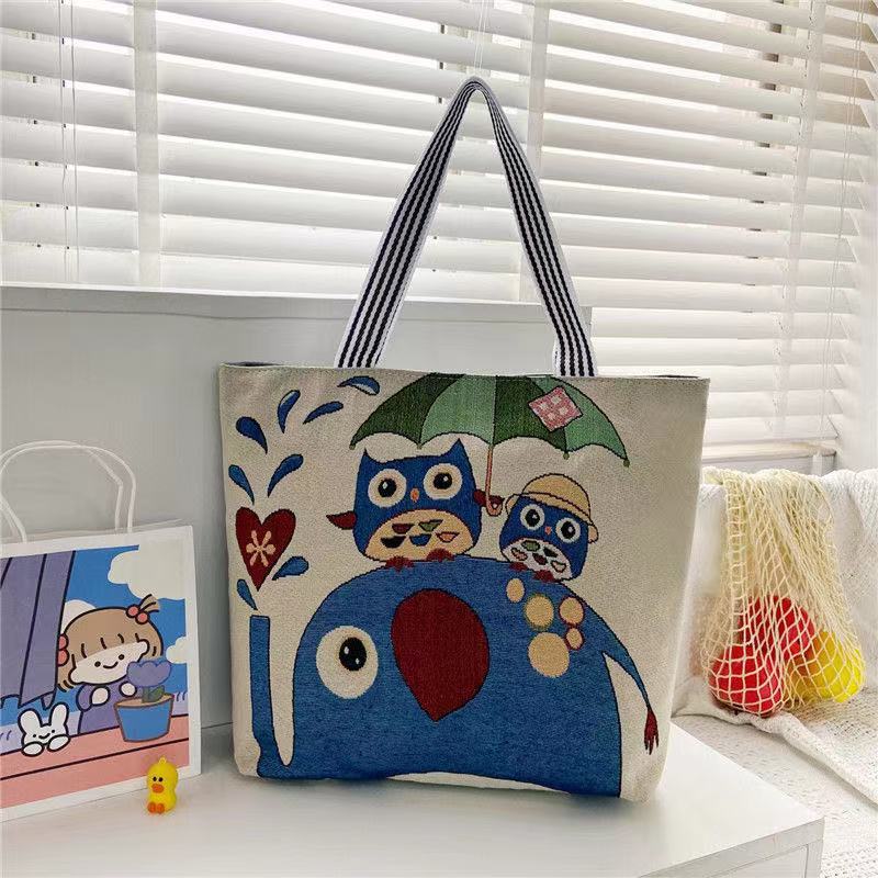 국경 간 하라주쿠 스타일 만화 캔버스 가방 예술적 대용량 어깨 가방 리넨 유행 멋진 민족 스타일 여성 가방스토어 가기