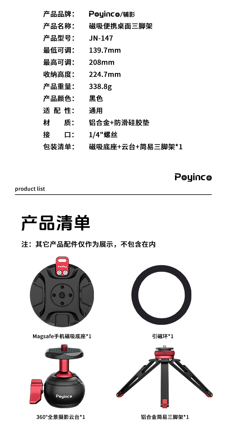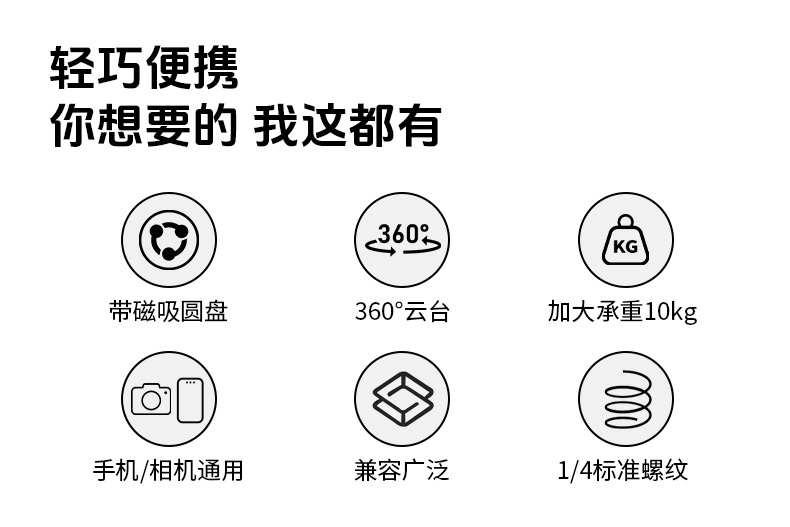다기능 유니버설 짐벌 휴대폰 라이브 방송 마그네틱 삼각대 휴대용 브이로그 알루미늄 합금 카메라 소형 삼각대