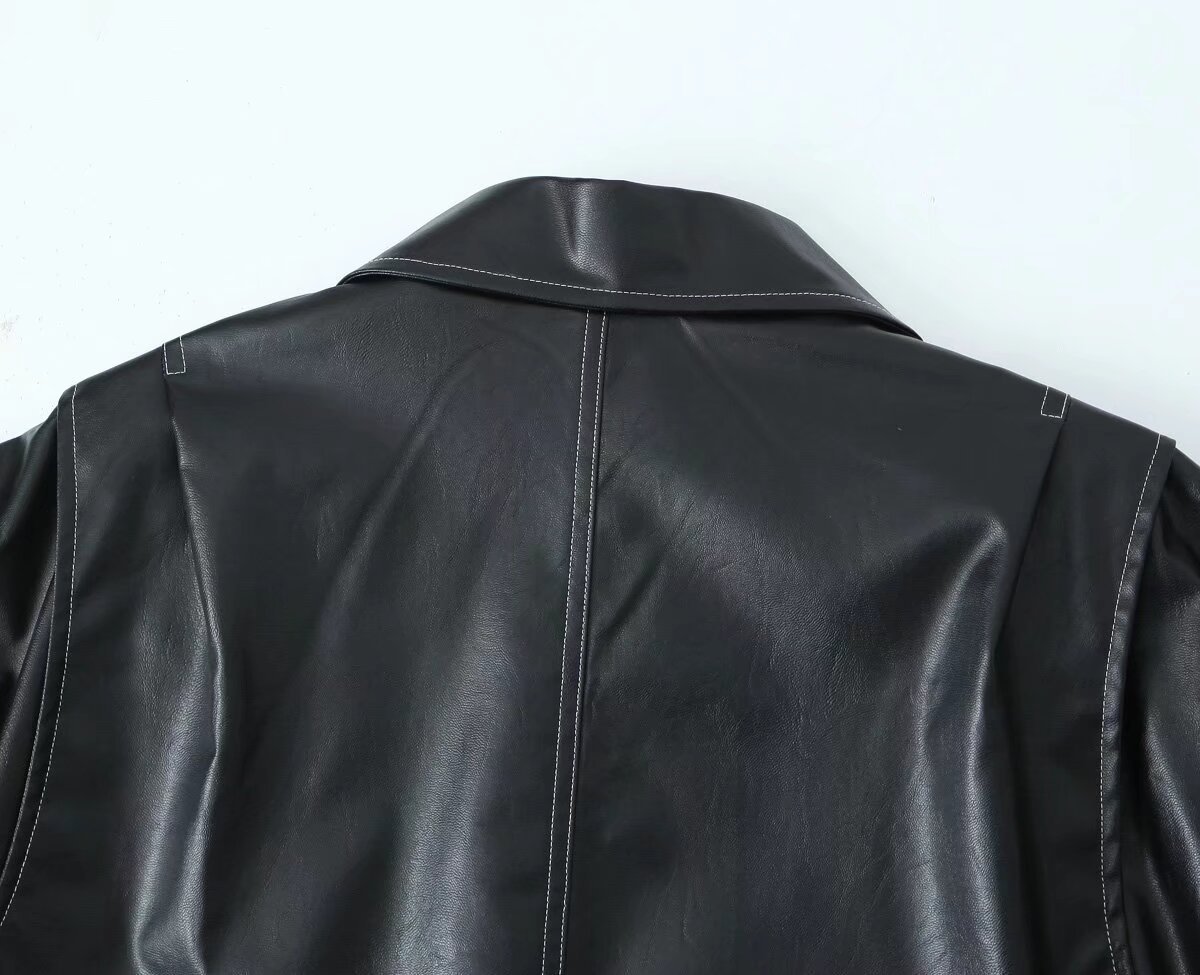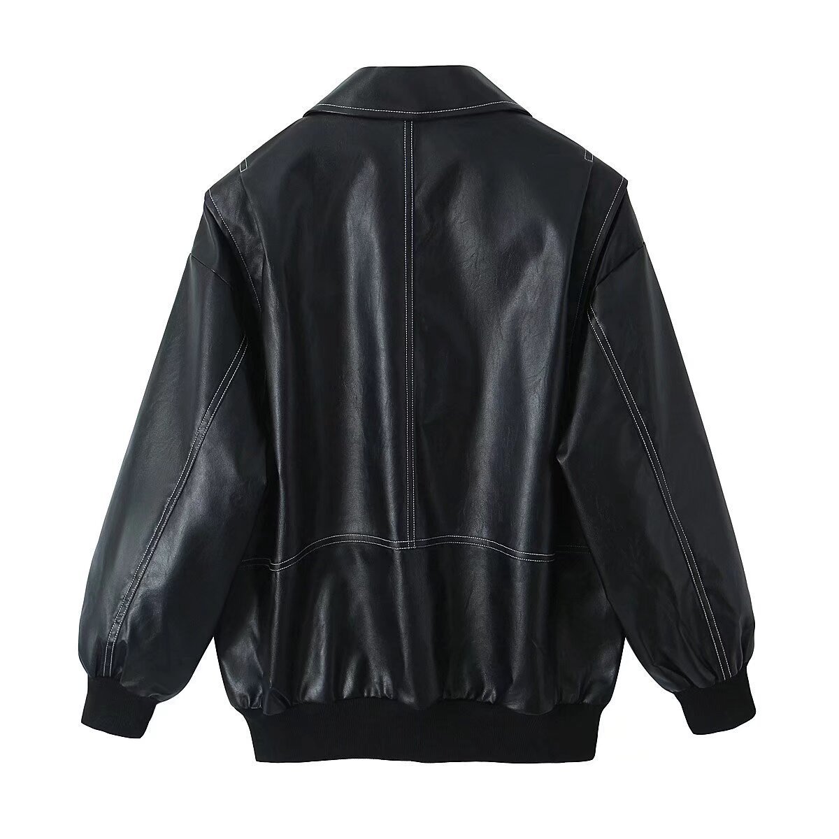 유럽과 미국의 대외 무역 2024 가을 새로운 여성 패션 느슨한 긴 소매 레트로 미국 옷깃 가죽 자켓 코트 여성스토어 가기