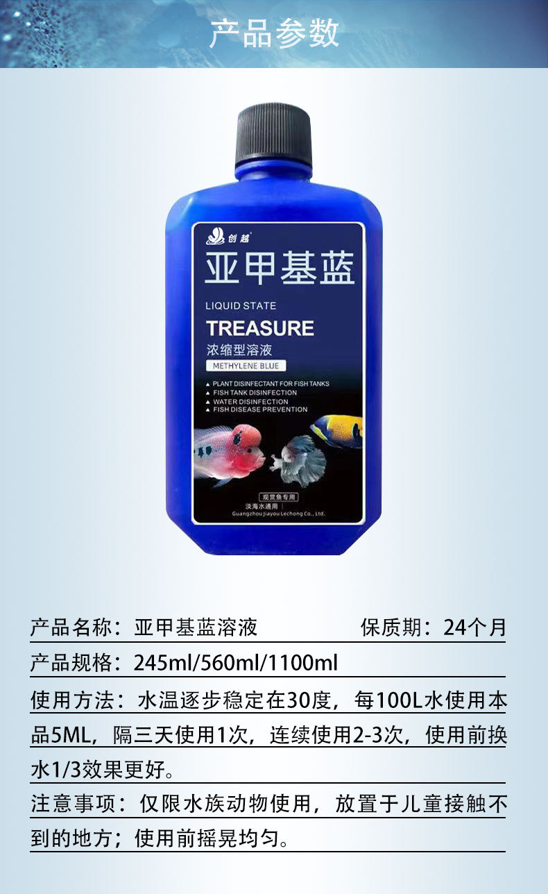 물고기 솔루션 양식 용 메틸렌 블루 관상용 물 정화 새로운 수족관 명확한 안정적인 메틸렌 블루 물고기