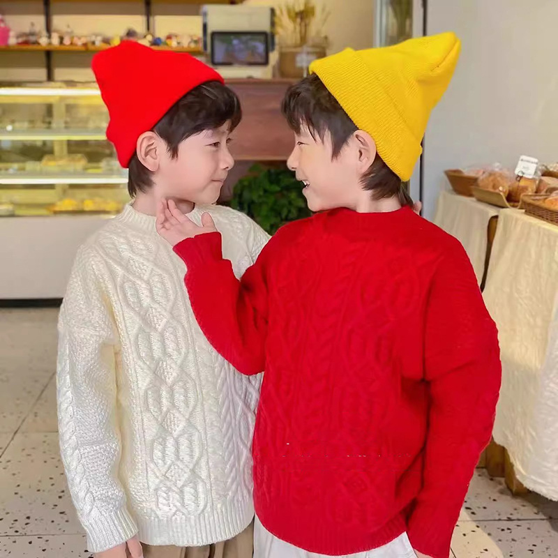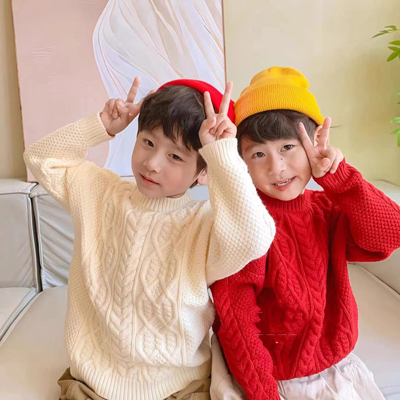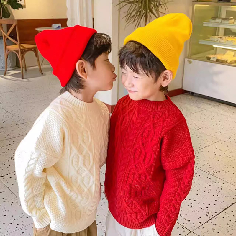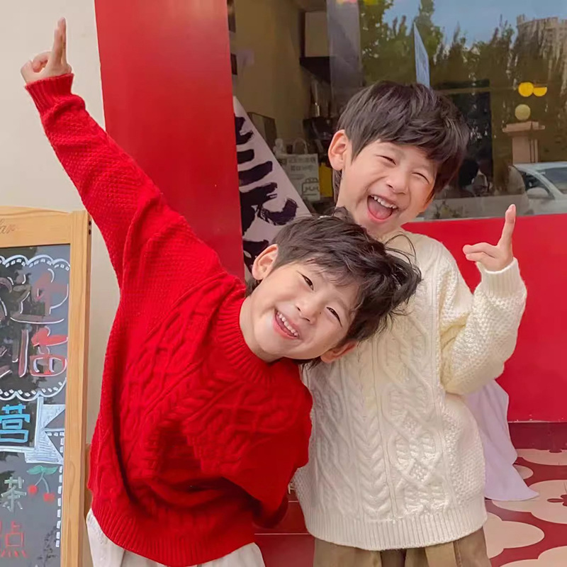 남녀 아동복 니트 상의 2025 가을 겨울 신상 아기 크리스마스 레드 축제 신년 축하 중국풍 스웨터스토어 가기