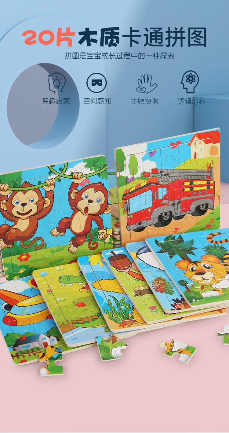 20 나무 만화 동물 비행기 퍼즐 유치원 아기 소년과 소녀 조기 교육 및 정보 건물 블록 장난감스토어 가기
