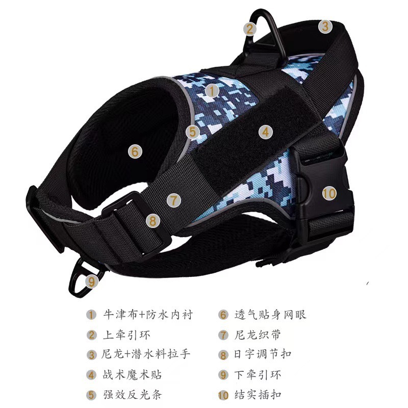 개 가죽끈 야외 전술 조끼 애완 동물 하네스 조절 가능한 목 고리 빛나는 안전 개 산책 로프