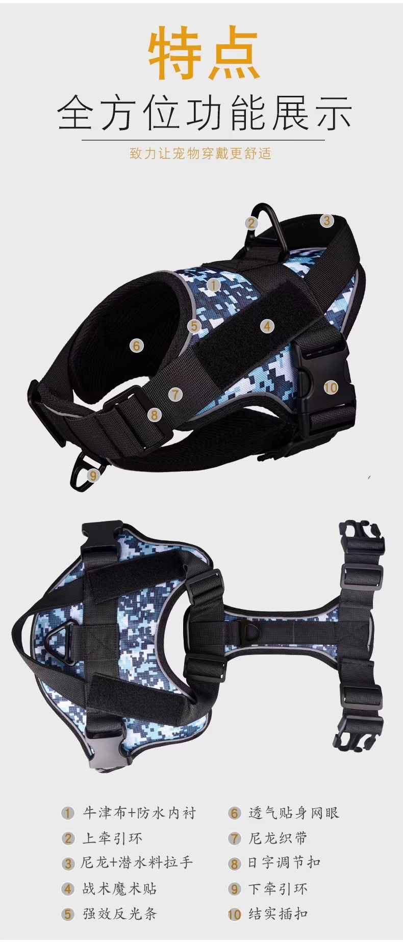 개 가죽끈 야외 전술 조끼 애완 동물 하네스 조절 가능한 목 고리 빛나는 안전 개 산책 로프스토어 가기