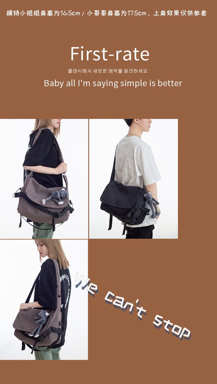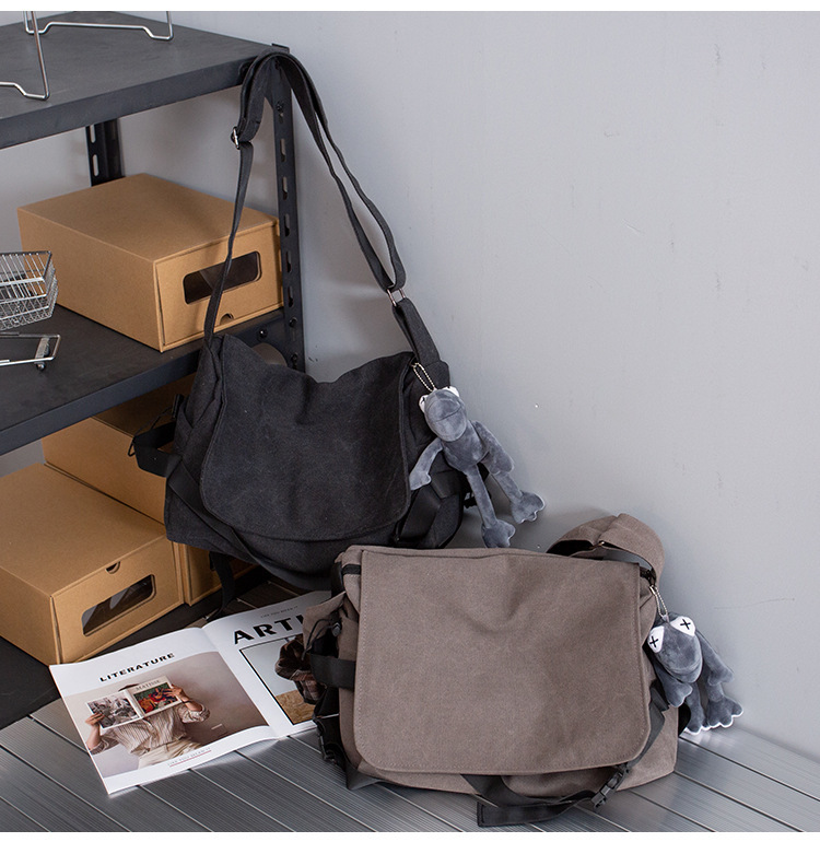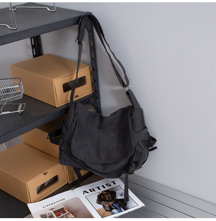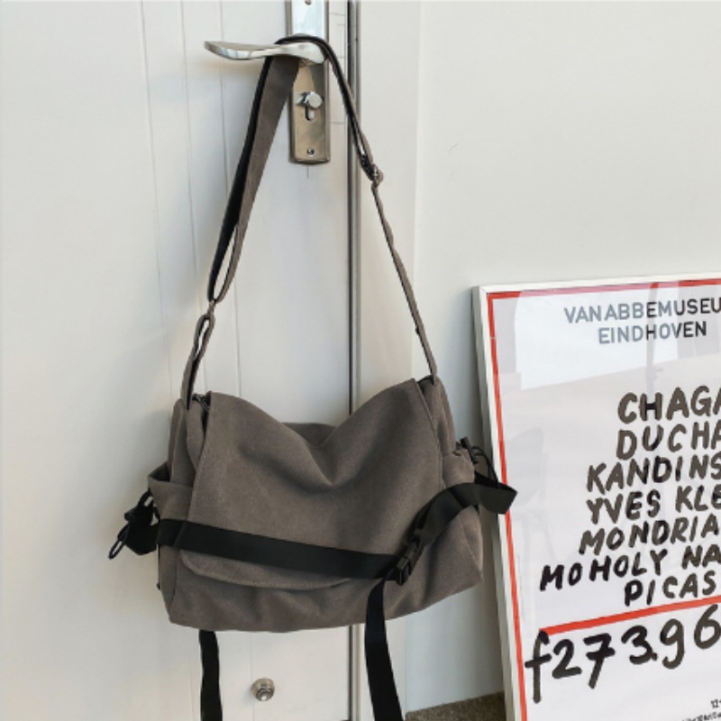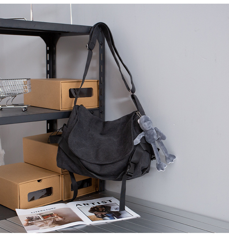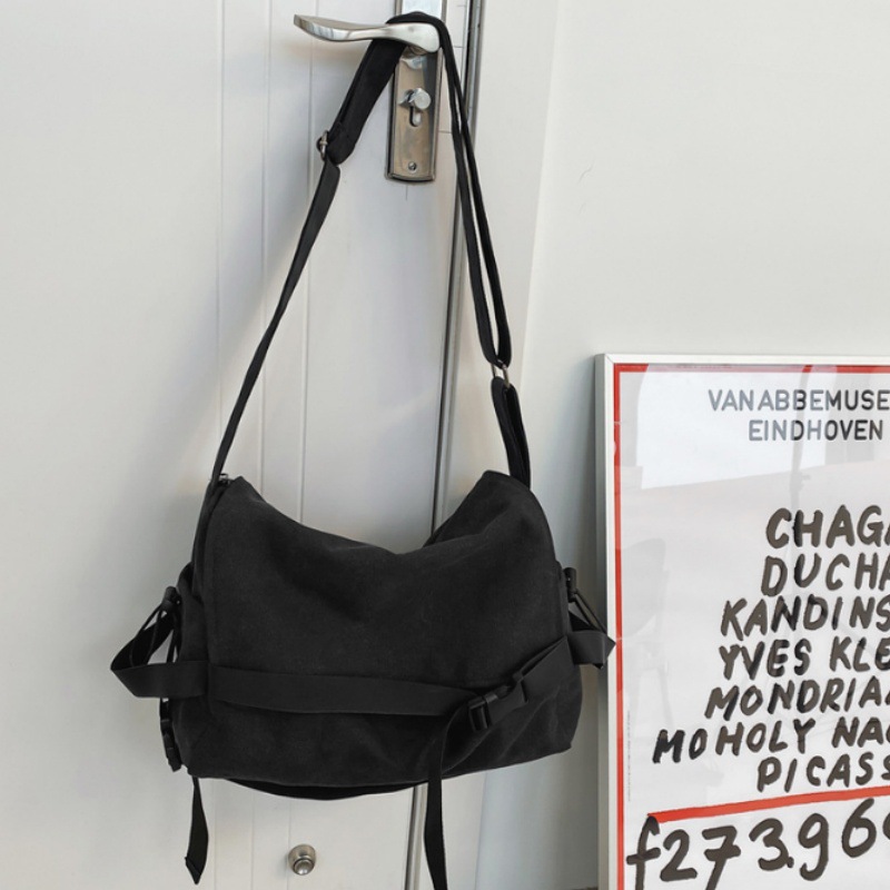 남성과 여성을 위한 한국식 게으른 스타일 숄더백, 대용량 캔버스 백, 단색 학생 숄더백, 다용도 캐주얼 크로스바디 백