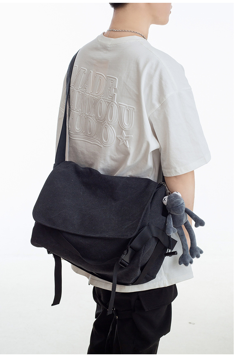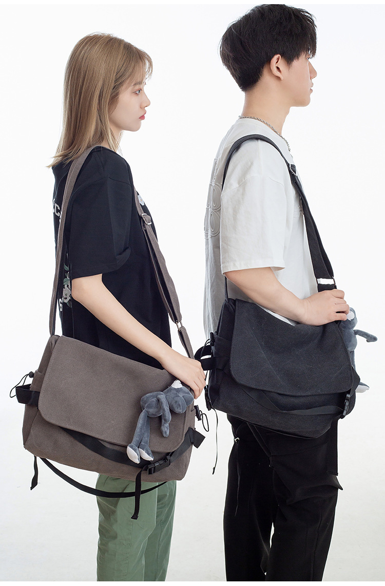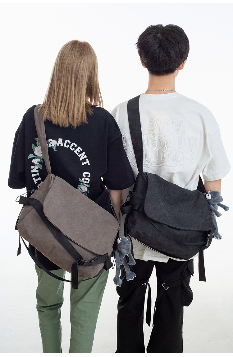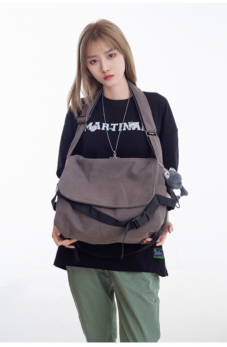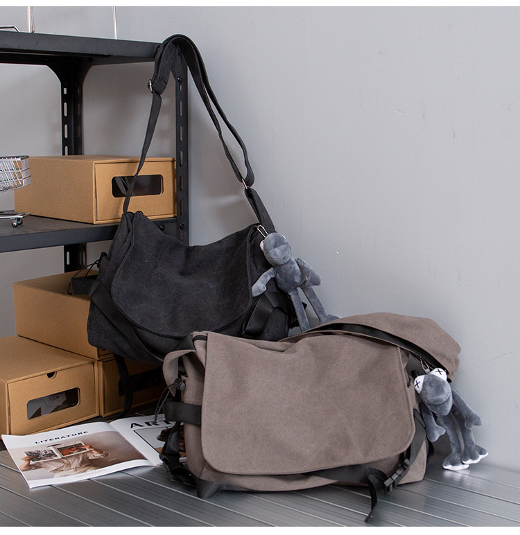 남성과 여성을 위한 한국식 게으른 스타일 숄더백, 대용량 캔버스 백, 단색 학생 숄더백, 다용도 캐주얼 크로스바디 백