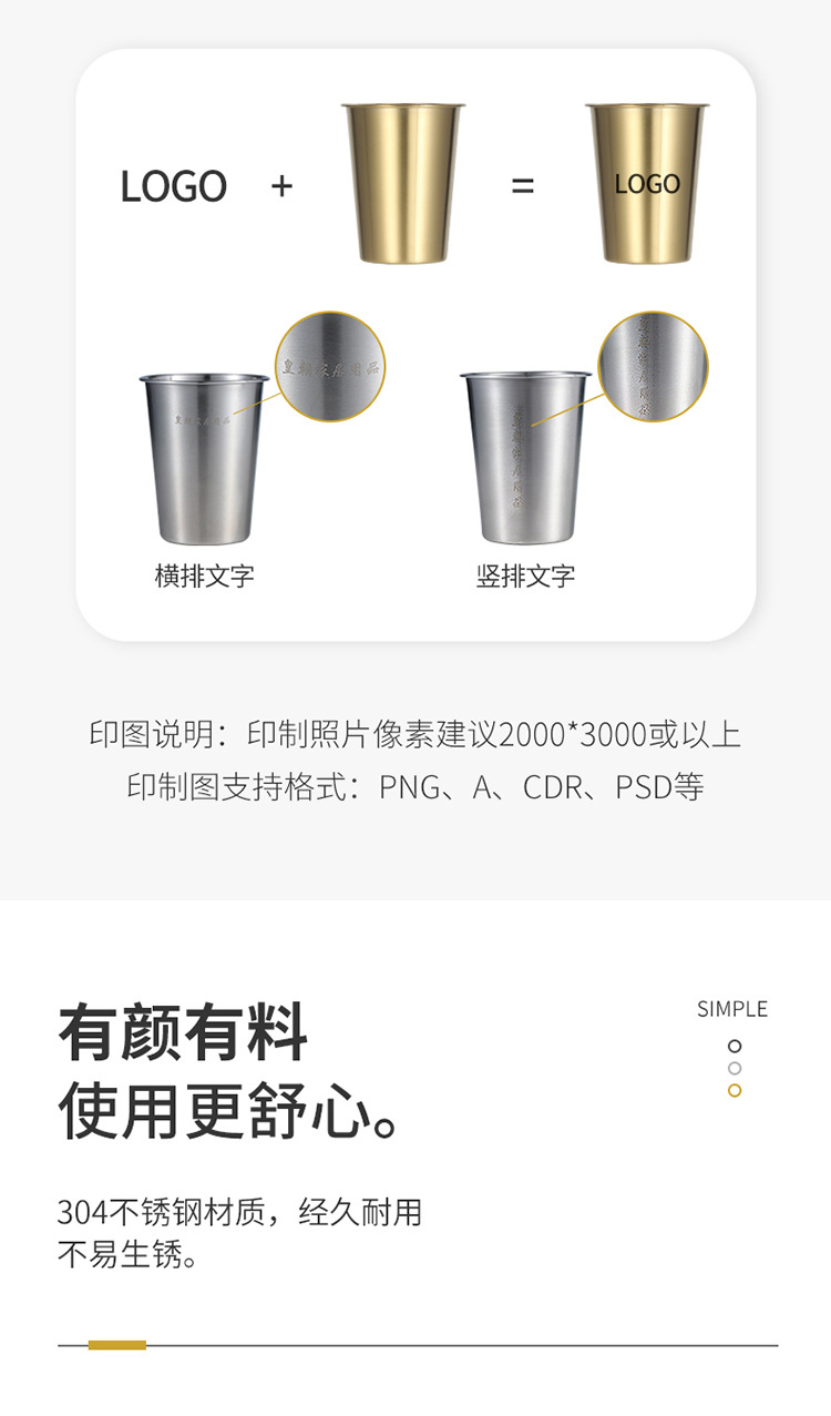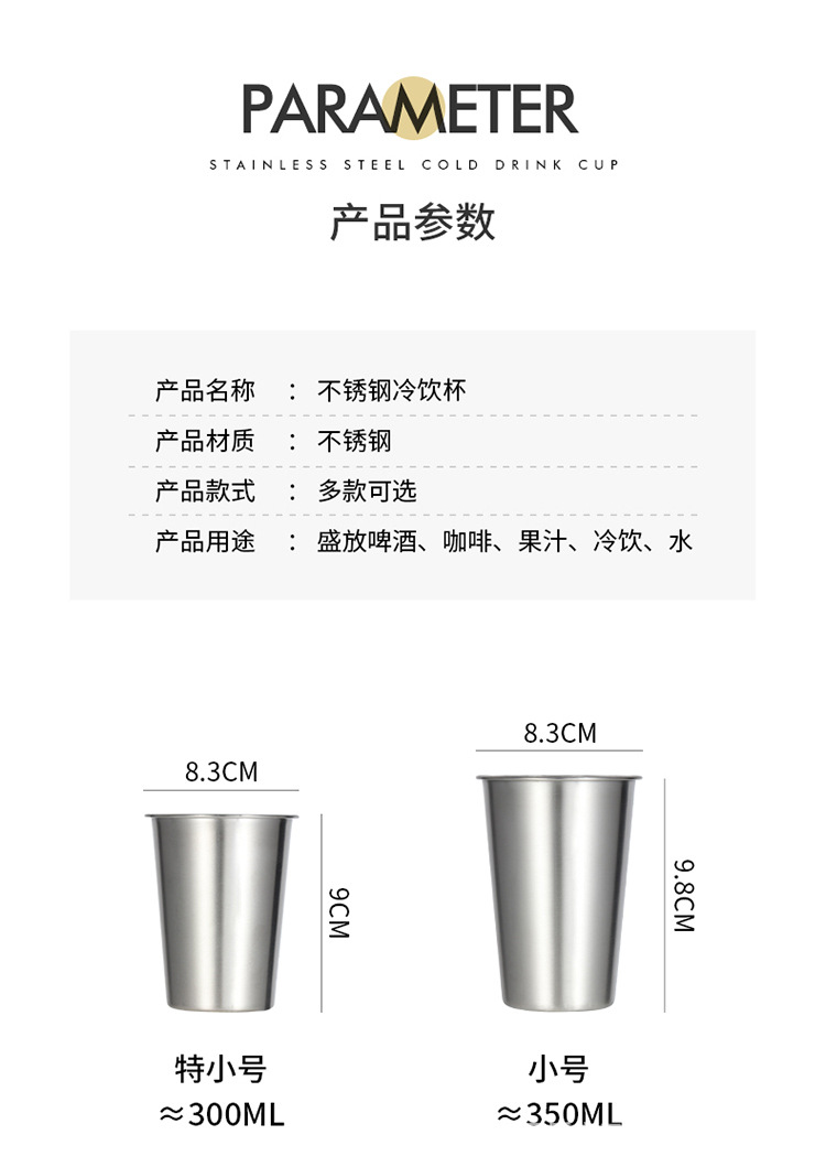 304 스테인레스 스틸 싱글 레이어 컵 피크닉 야외 워터 컵 캠핑 편리한 광고 컵 한국 맥주 컵 주스 컵