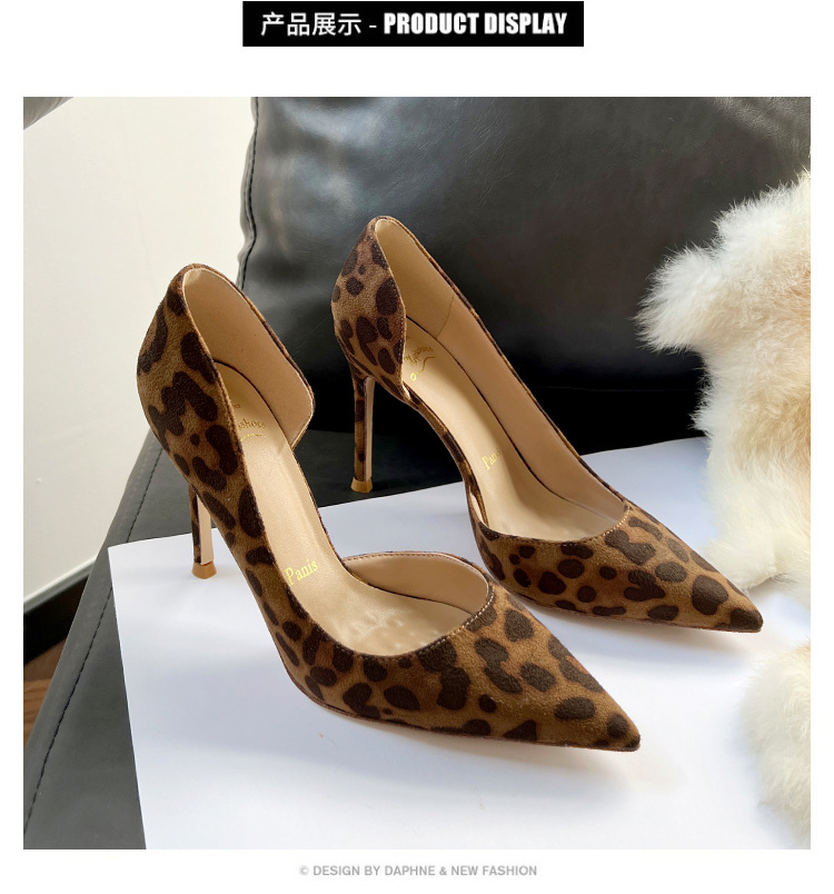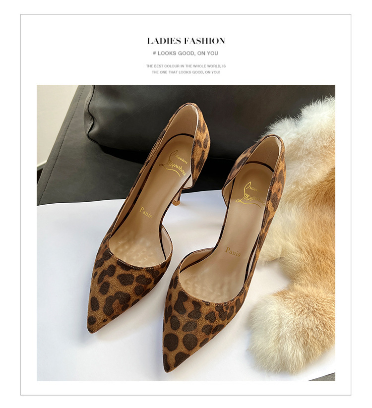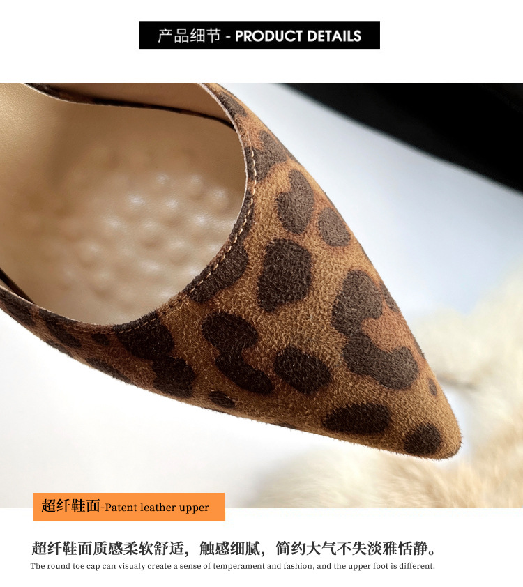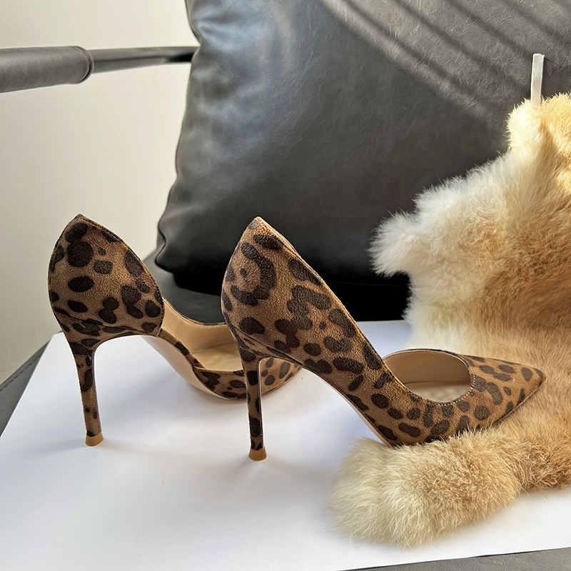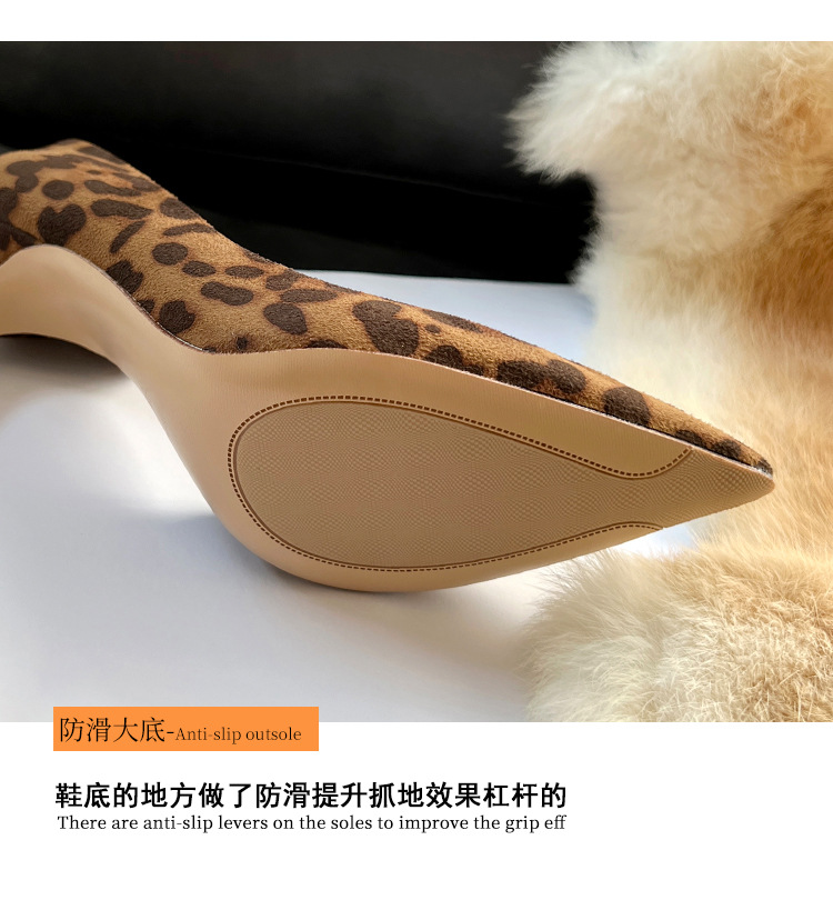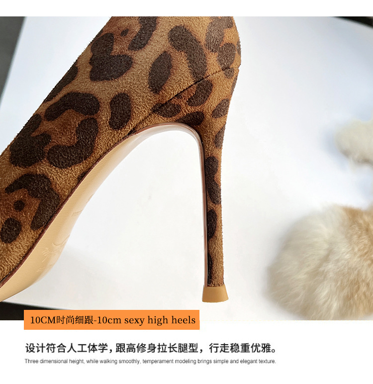 봄 새로운 뾰족한 사이드 빈 하이힐 우아한 올매치 얇은 힐 섹시한 레오파드 무늬 편안한 스웨이드 얕은 입 싱글 레이어 신발스토어 가기