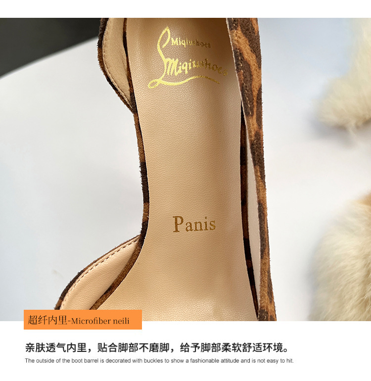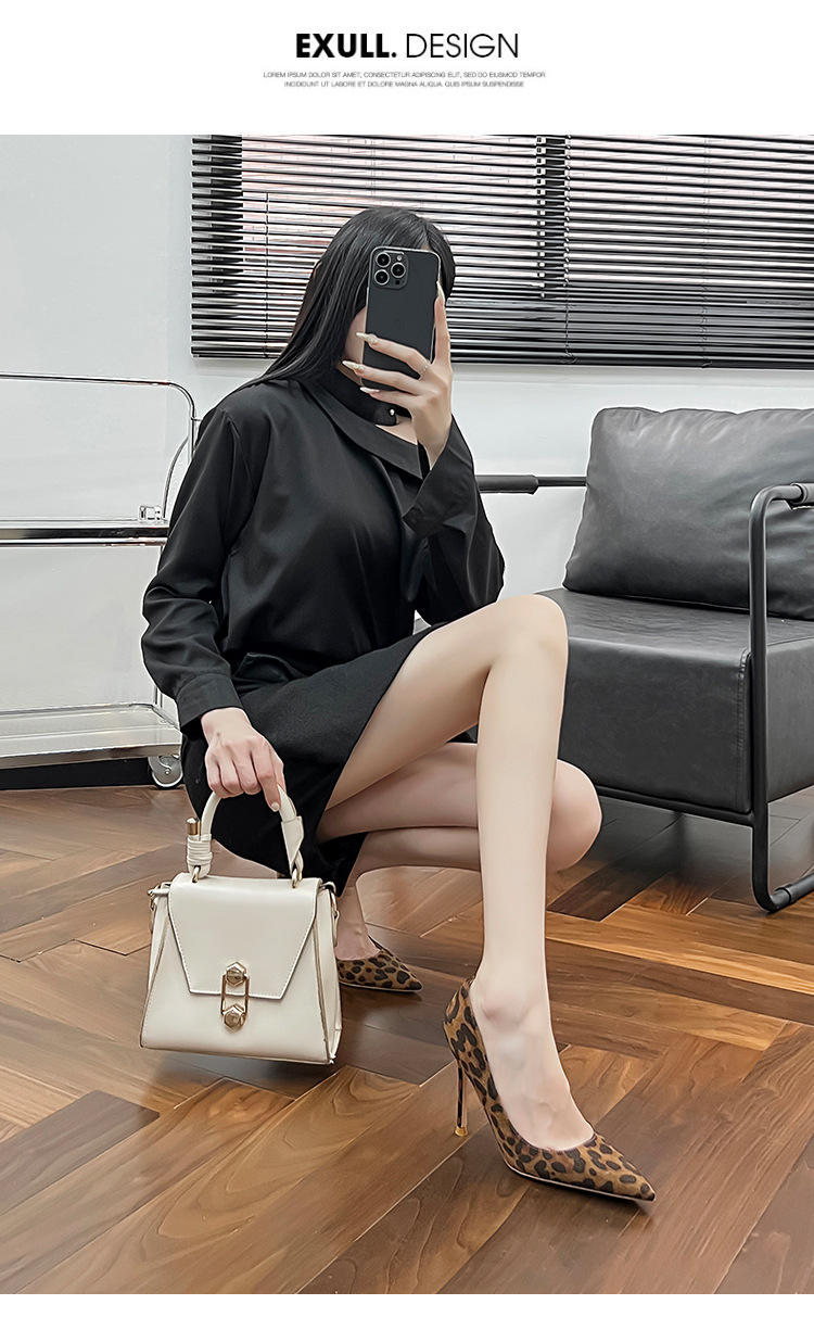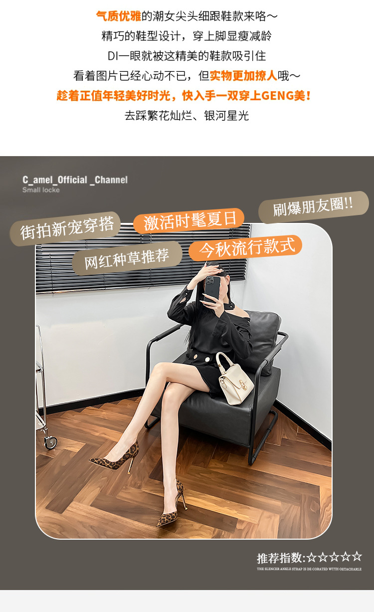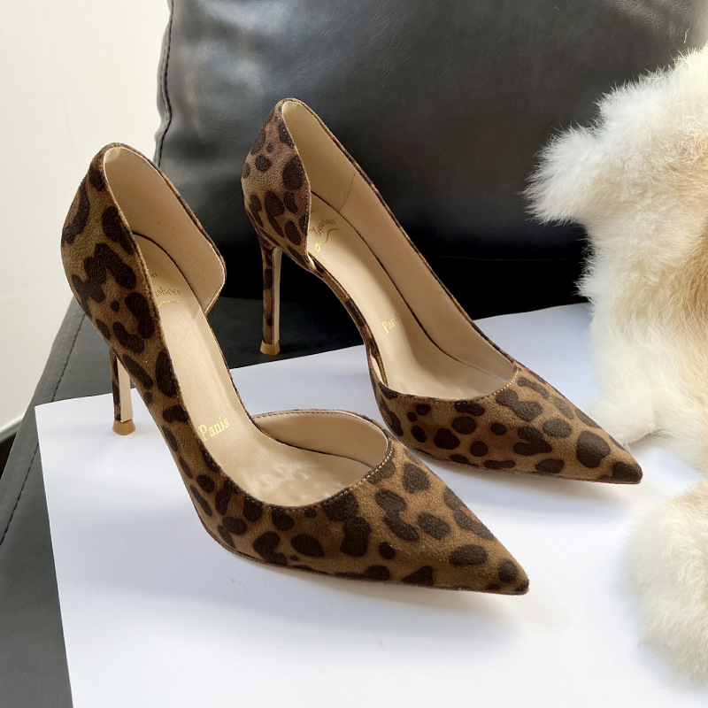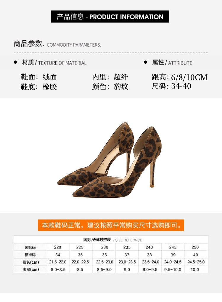 봄 새로운 뾰족한 사이드 빈 하이힐 우아한 올매치 얇은 힐 섹시한 레오파드 무늬 편안한 스웨이드 얕은 입 싱글 레이어 신발스토어 가기