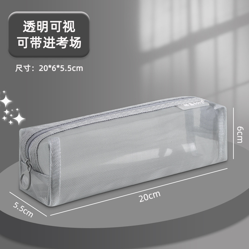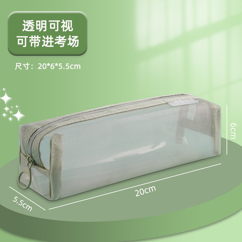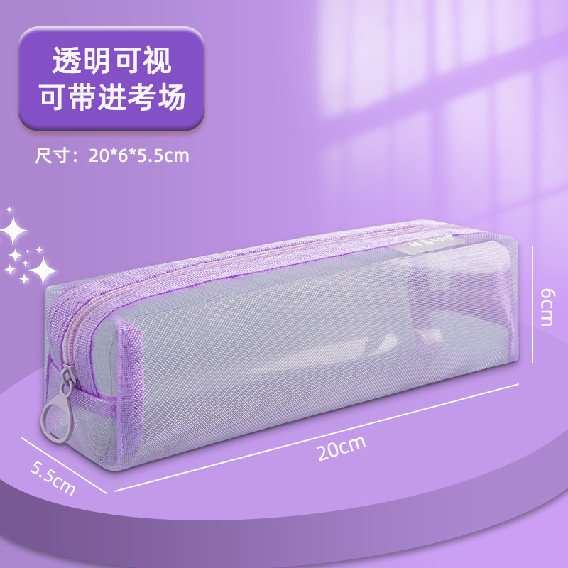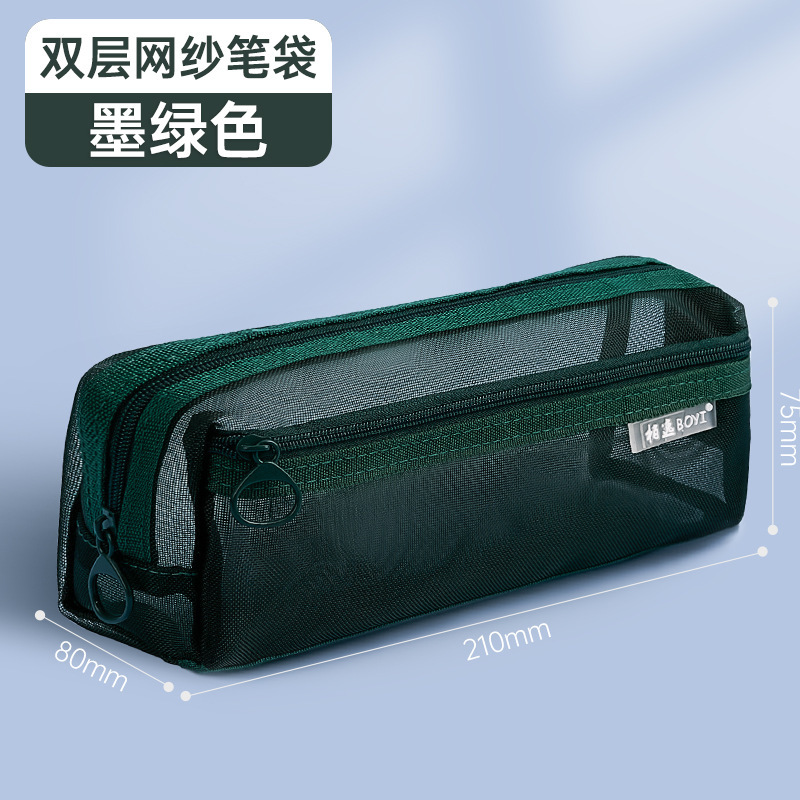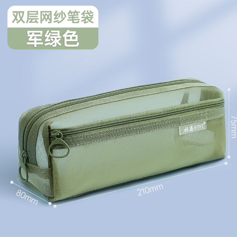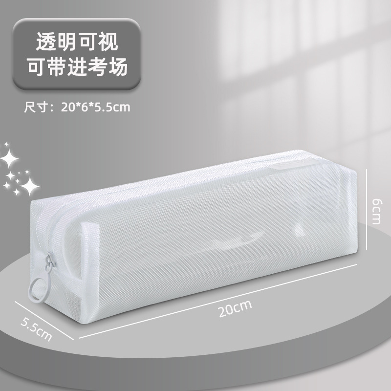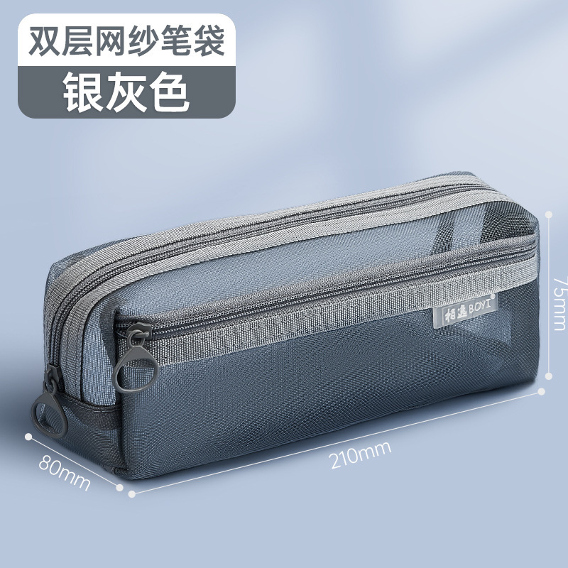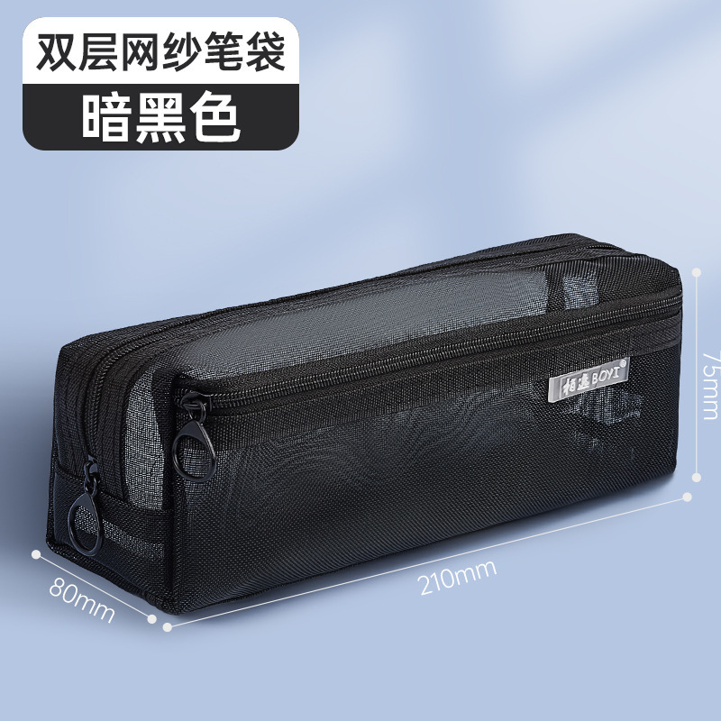 메쉬 연필 케이스 대용량 투명 간단한 더블 레이어 연필 케이스 학생 시험 사무실 지퍼 문구 보관 문구 가방스토어 가기