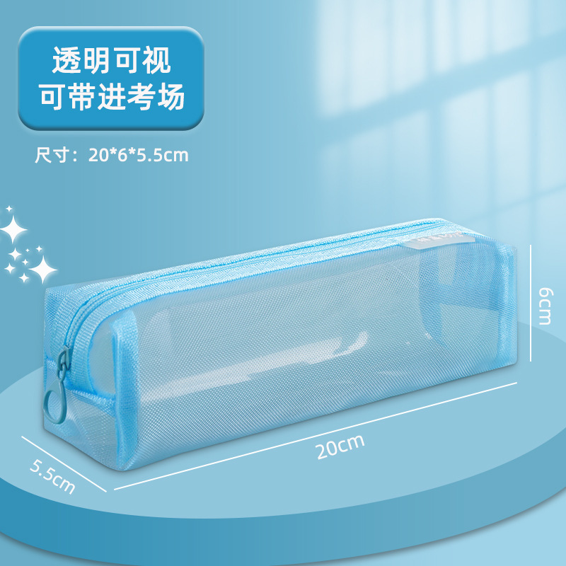 • 메쉬 투명 필통 심플 사각 라이트 블루 90094