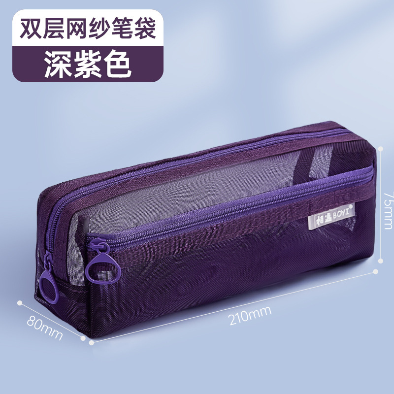 • 더블 레이어 메쉬 필통 더블 레이어 다크 퍼플 90081
