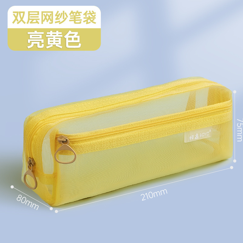 • 더블 레이어 메쉬 필통 더블 레이어 밝은 노란색 90081