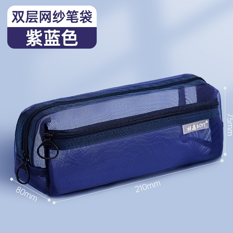 • 더블 레이어 메쉬 필통 더블 레이어 퍼플 블루 90081