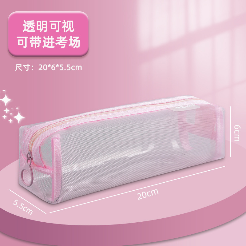 • 메쉬 투명 필통 심플 사각 라이트 핑크 90094