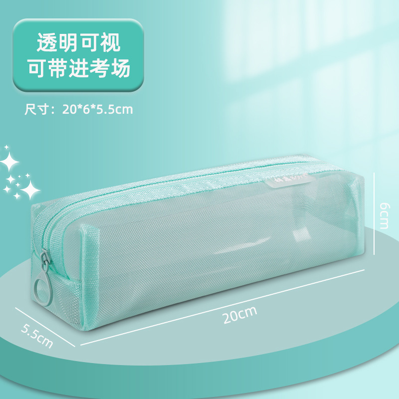• 메쉬 투명 필통 심플 사각 시안 90094