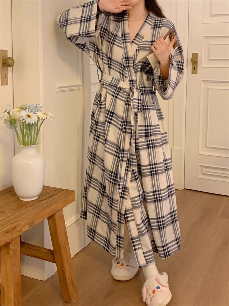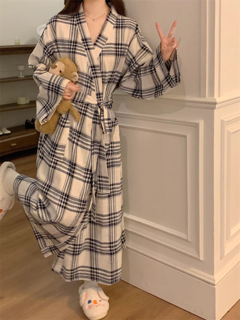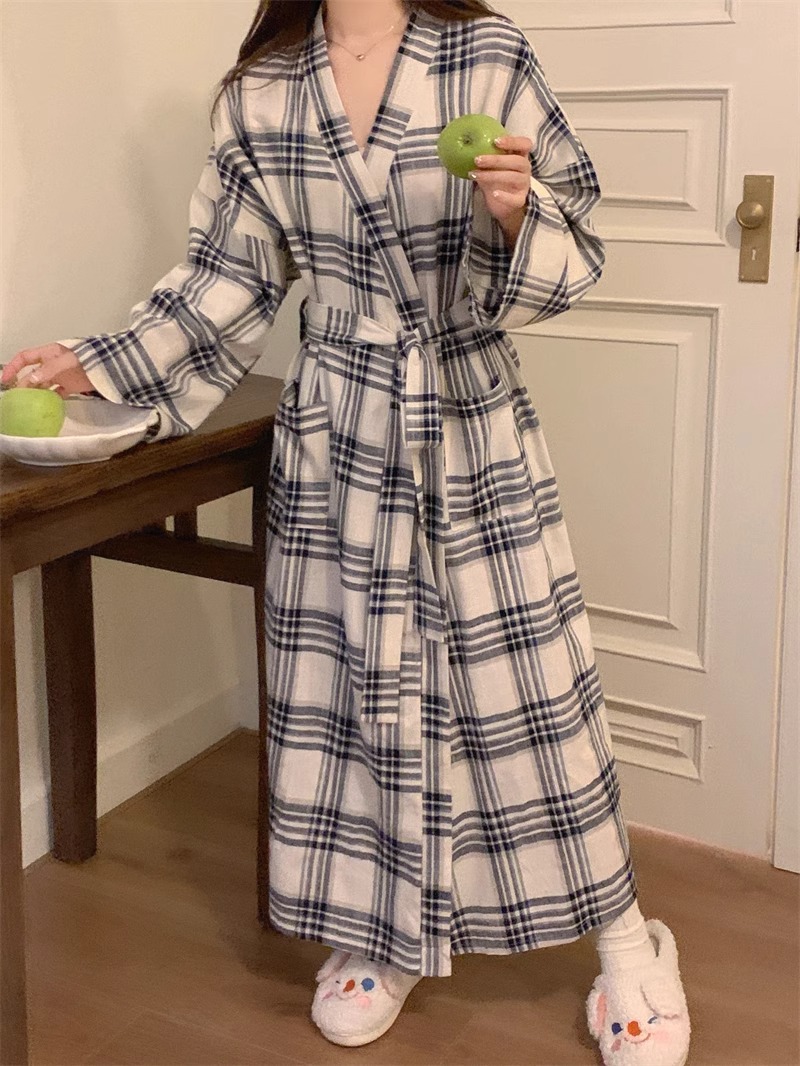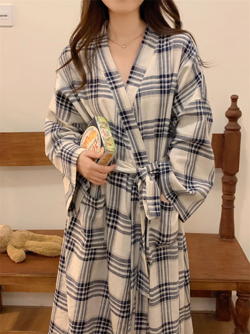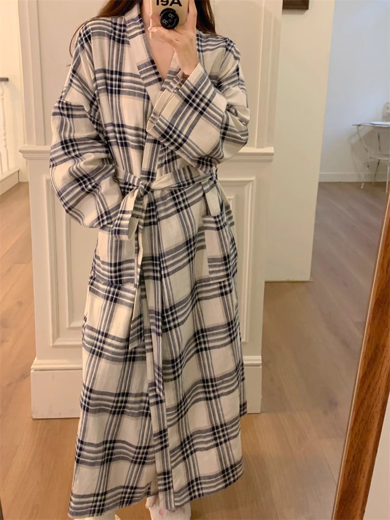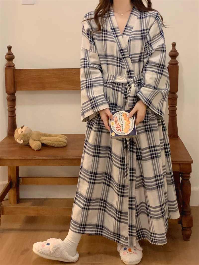일본식 잠옷 소녀의 봄과 가을 새로운 긴 소매 간단한 캐주얼 목욕 가운 긴 느슨한 기모노 스타일 홈 옷스토어 가기