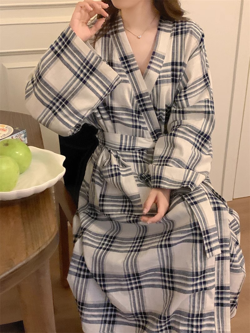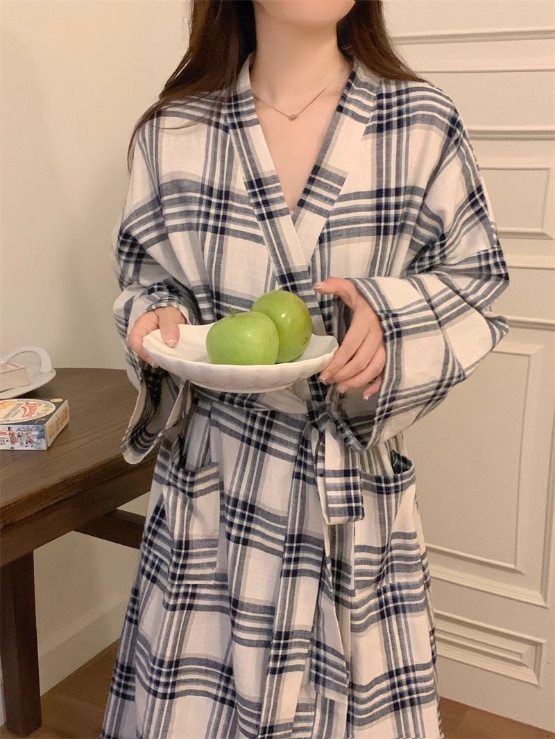 일본식 잠옷 소녀의 봄과 가을 새로운 긴 소매 간단한 캐주얼 목욕 가운 긴 느슨한 기모노 스타일 홈 옷