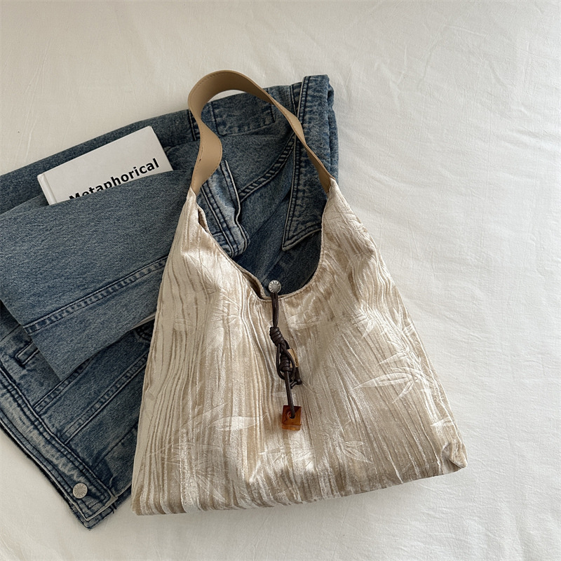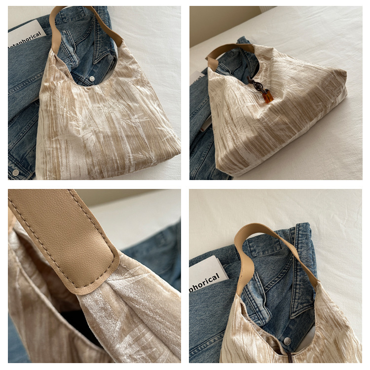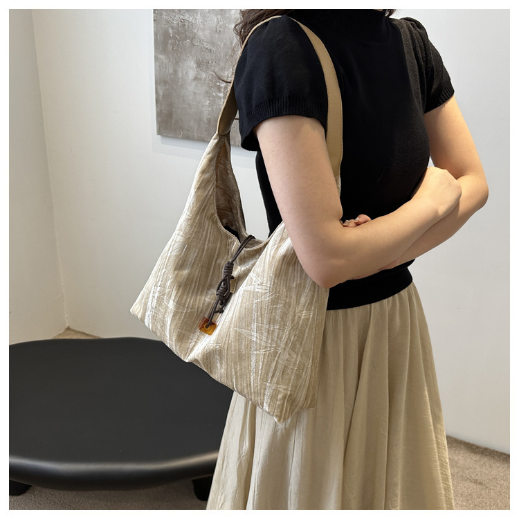 새로운 중국 스타일 국가 스타일 토트 백 여성의 2024 새로운 여름 대용량 캔버스 어깨 가방 캐주얼 작업 가방