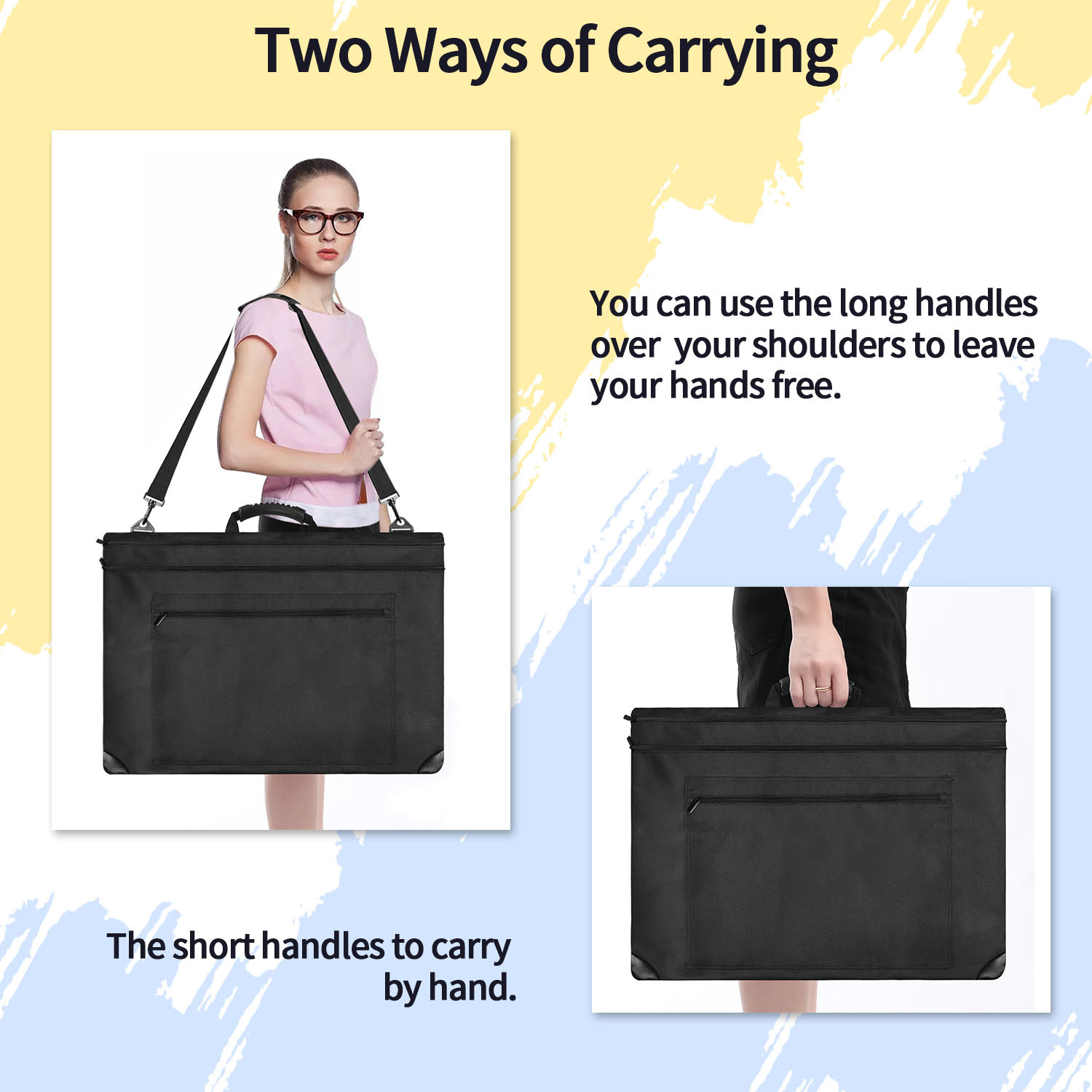 【两种携带方式】这款艺术公文包设计有两种尺寸的手柄。您可以使用短手柄手提,也可以使用长手柄在肩膀上,这对于您在室内或室外运输艺术品和绘画非常方便,还可以保护艺术品在旅行时免受弄脏。