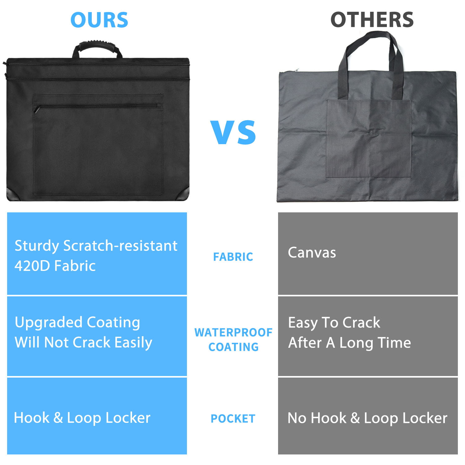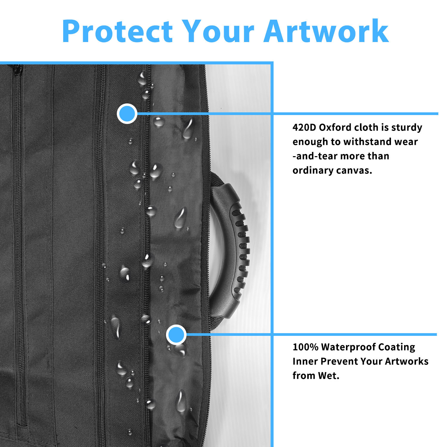 【防水轻便】我们的艺术组合包防水,采用 600D 涤纶防水涂层面料制成,可以避免您的艺术品和文件被淋湿,即使在雨中,您也可以随身携带, 这款艺术包重量轻但承重很大 。