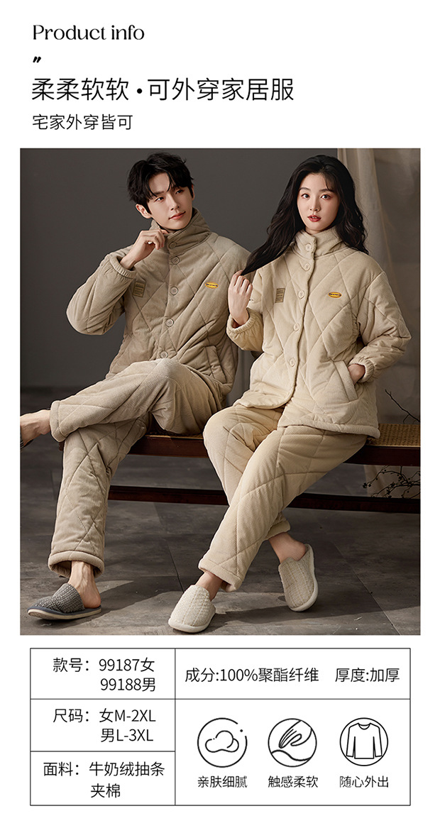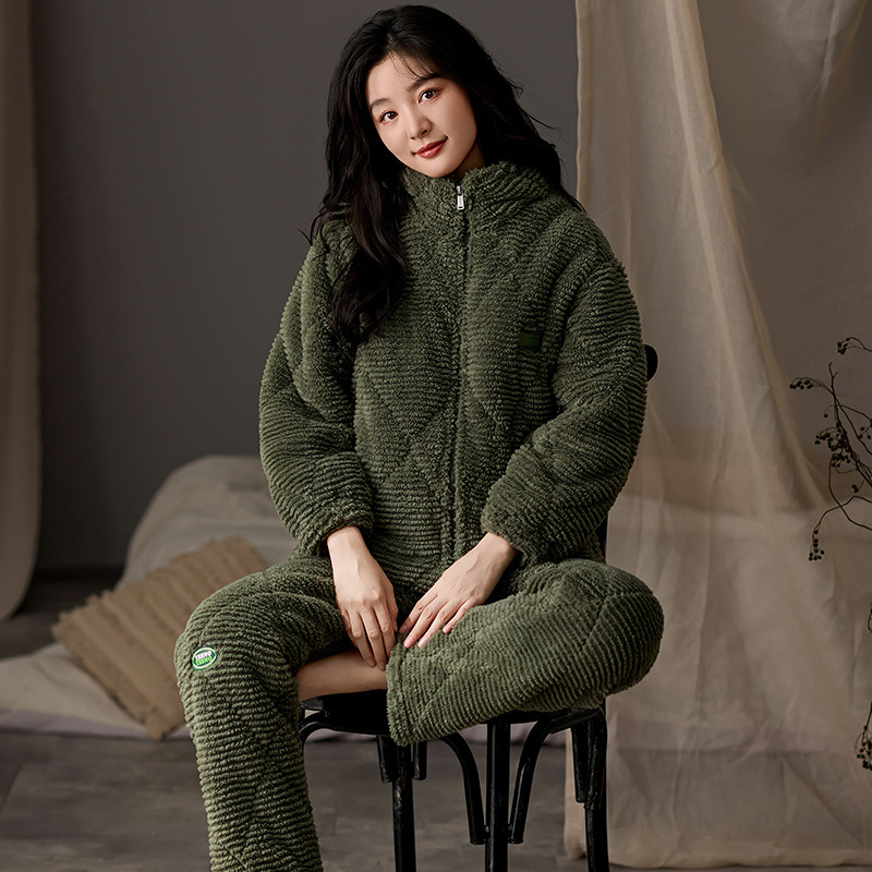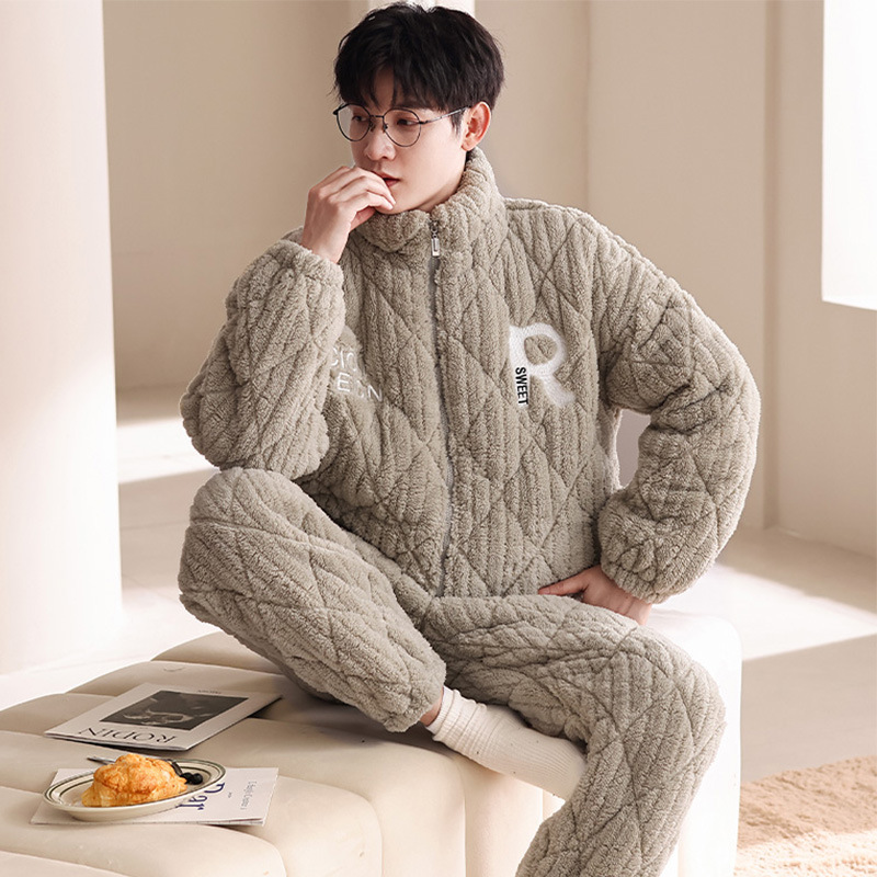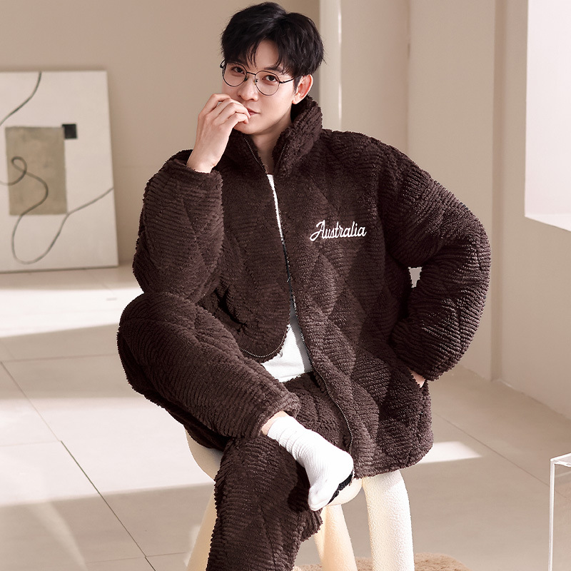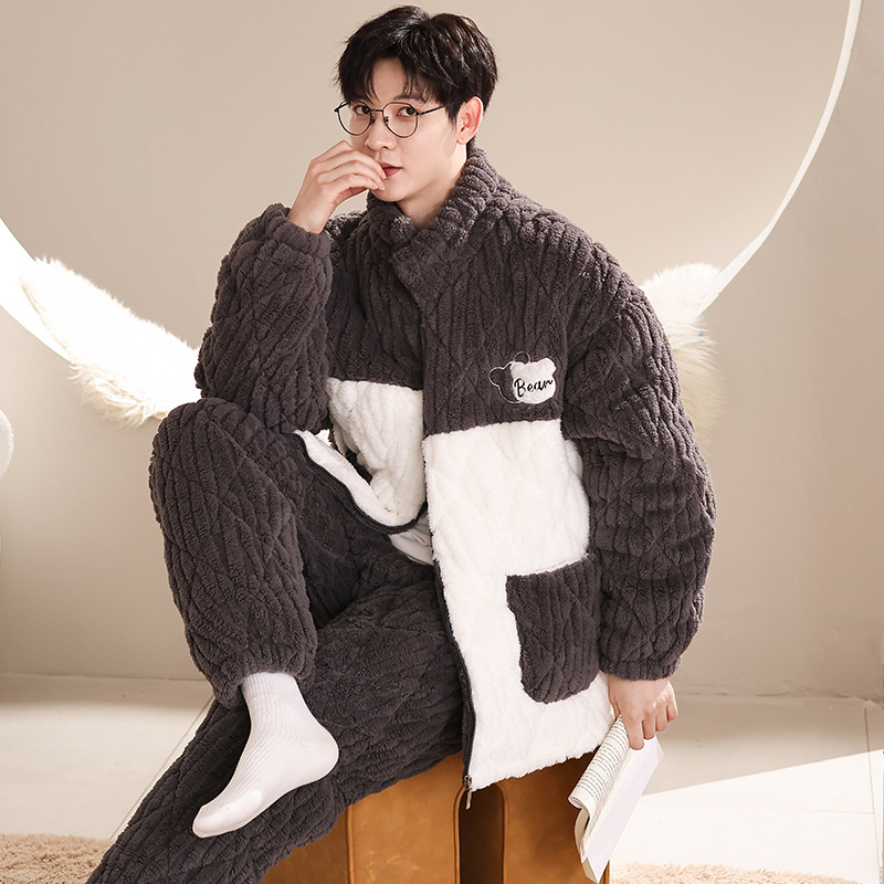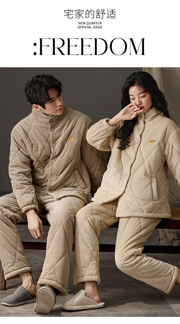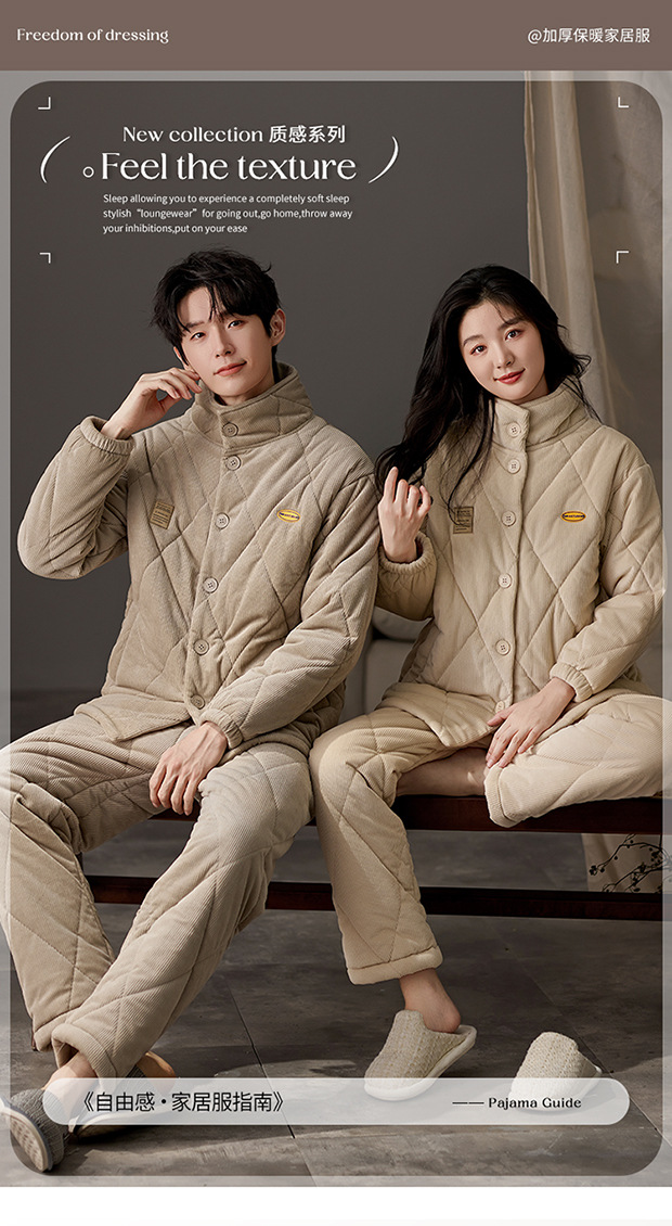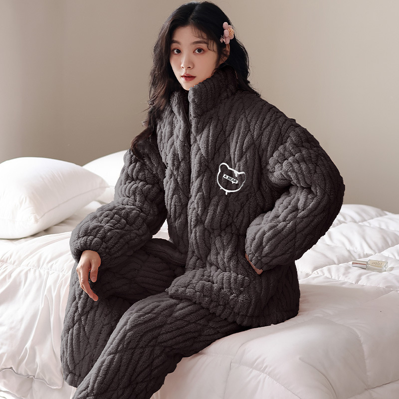 3 층 두꺼운 퀼트 커플 파자마 여성 가을과 겨울 산호 양털 후난 성 의류 의류 남성 홈 의류 겨울