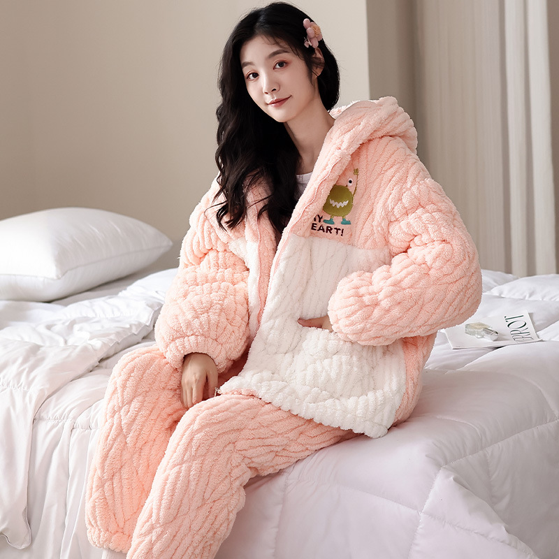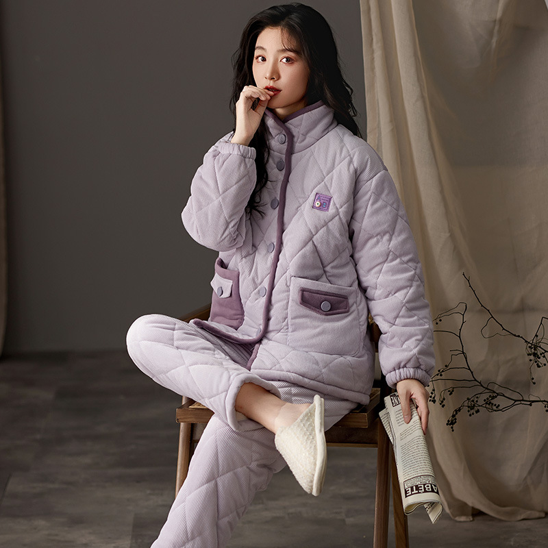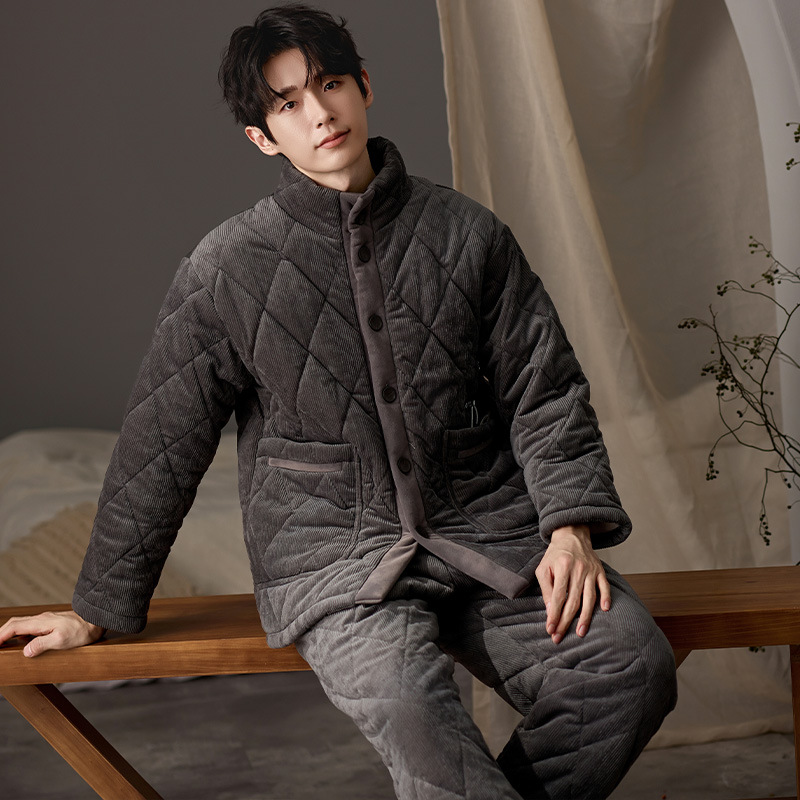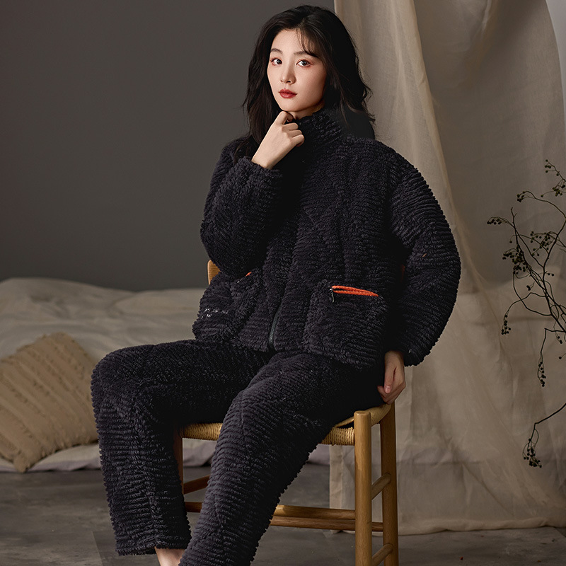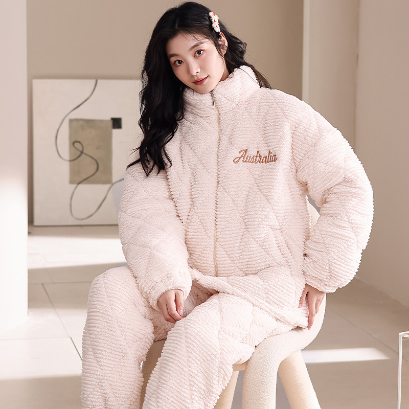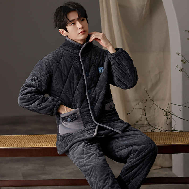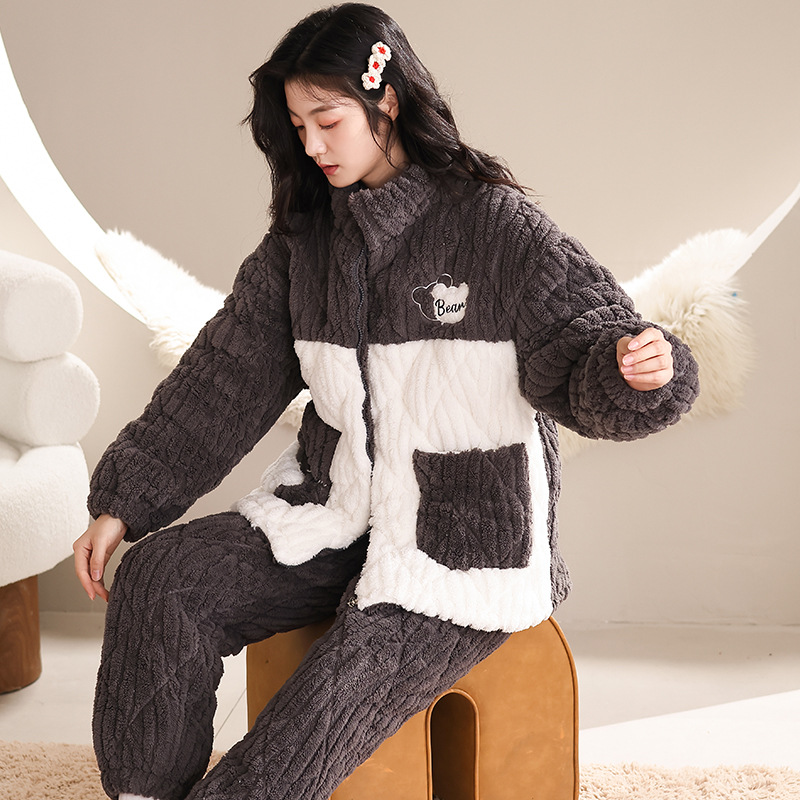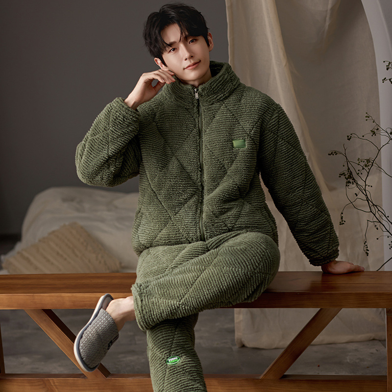 3 층 두꺼운 퀼트 커플 파자마 여성 가을과 겨울 산호 양털 후난 성 의류 의류 남성 홈 의류 겨울