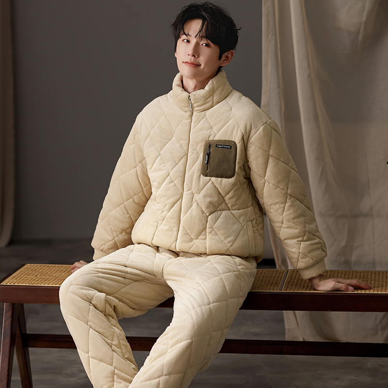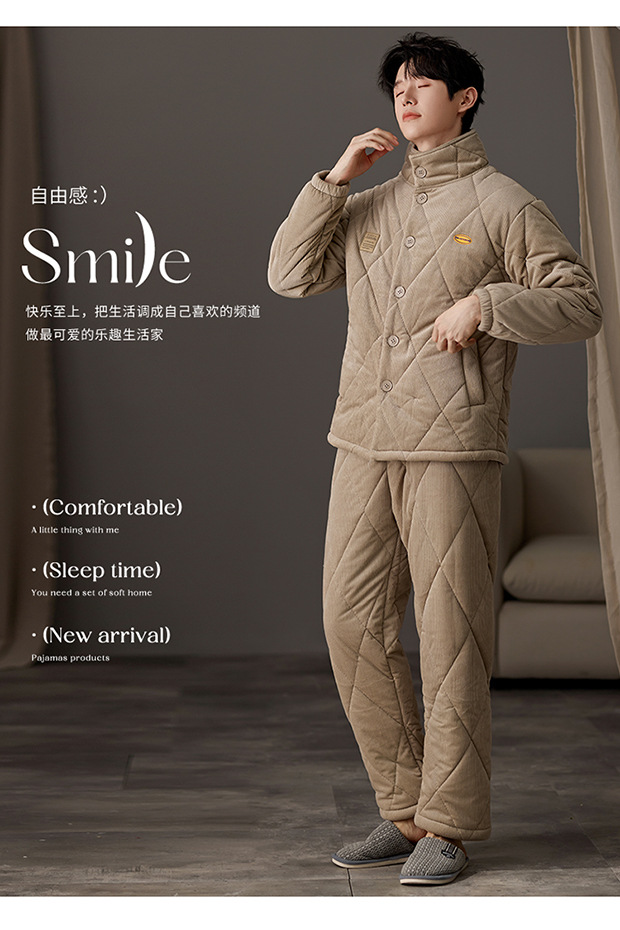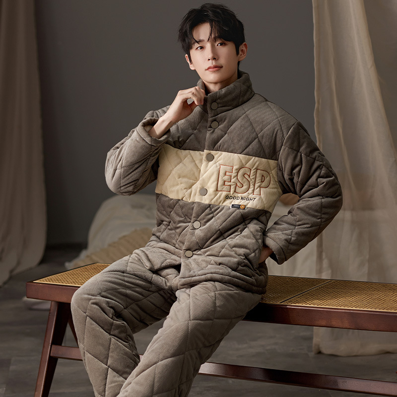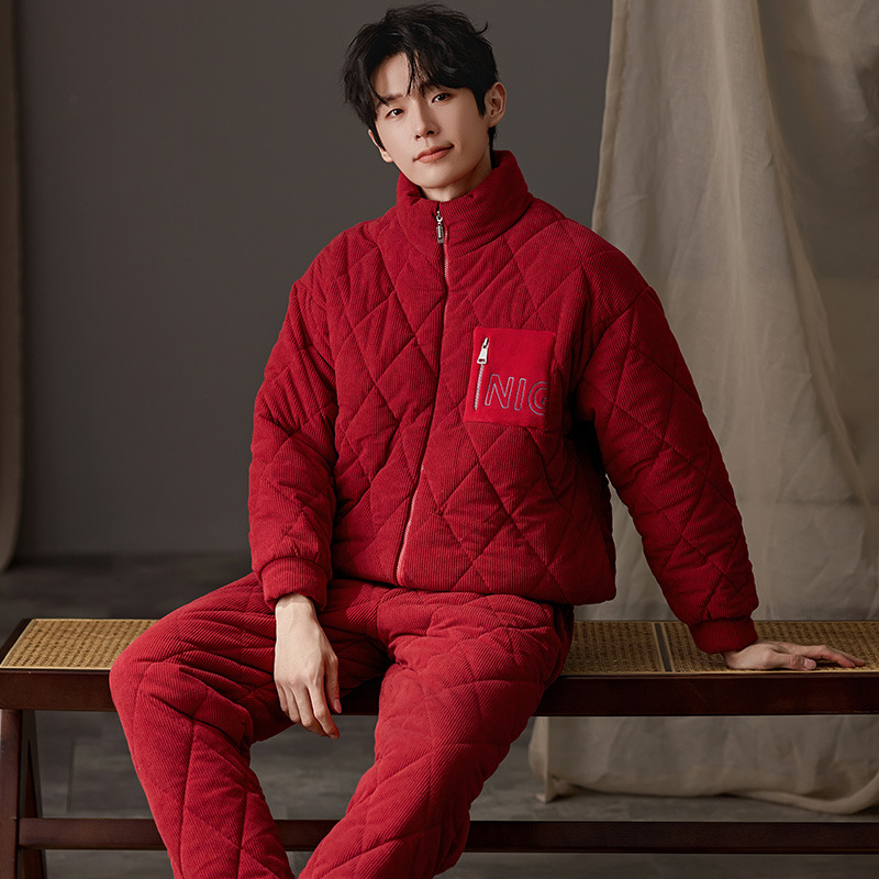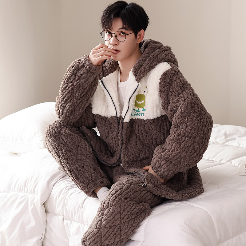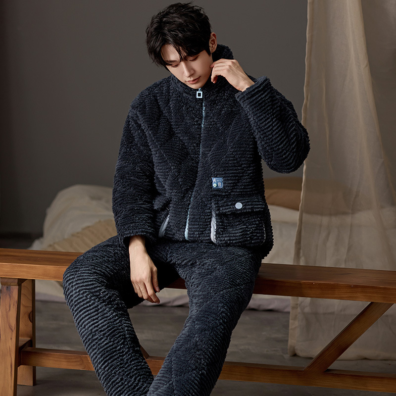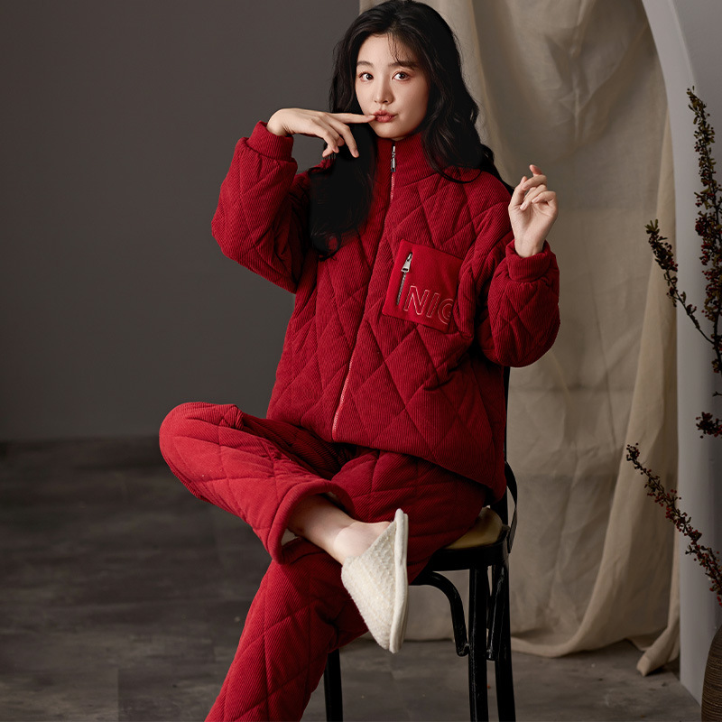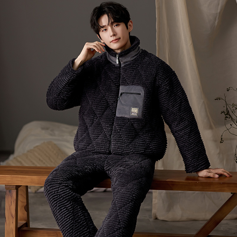 3 층 두꺼운 퀼트 커플 파자마 여성 가을과 겨울 산호 양털 후난 성 의류 의류 남성 홈 의류 겨울
