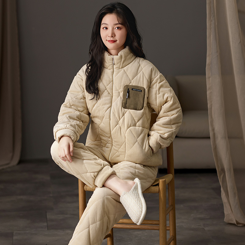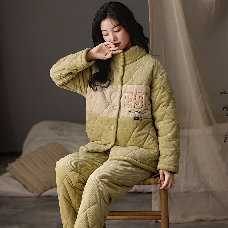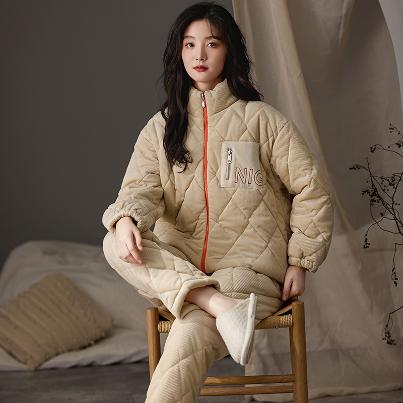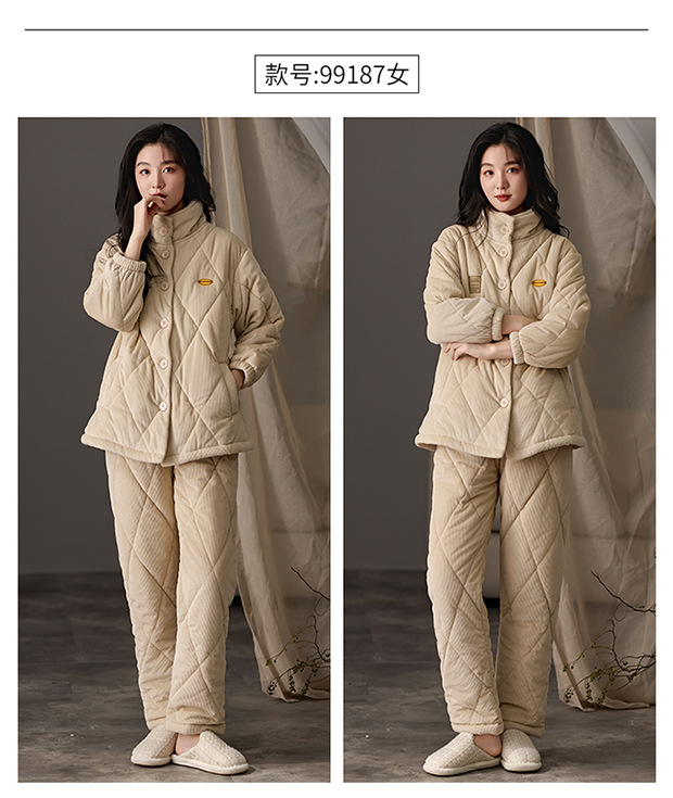 3 층 두꺼운 퀼트 커플 파자마 여성 가을과 겨울 산호 양털 후난 성 의류 의류 남성 홈 의류 겨울스토어 가기