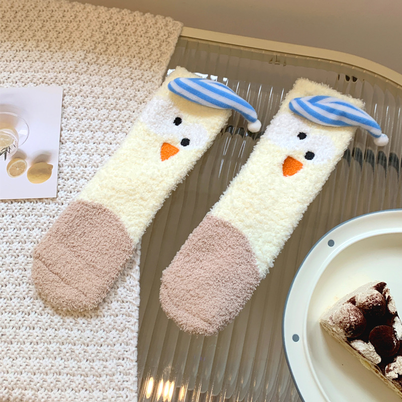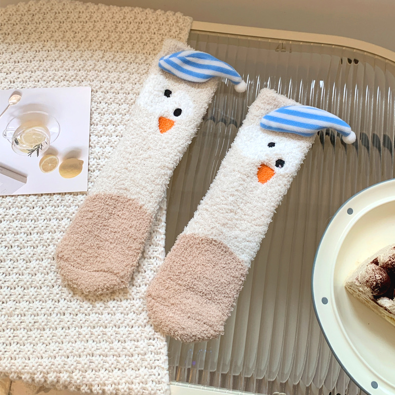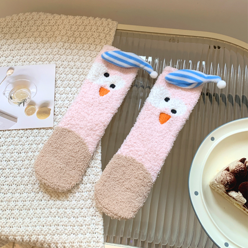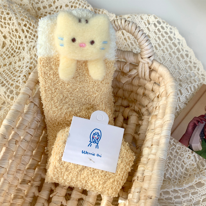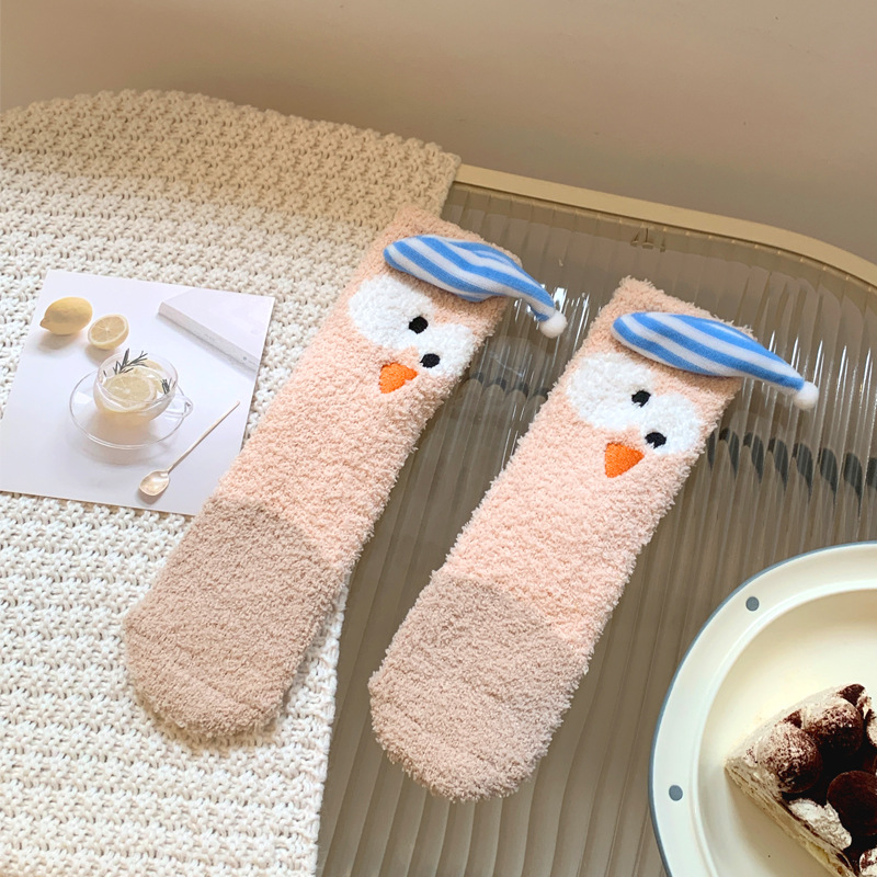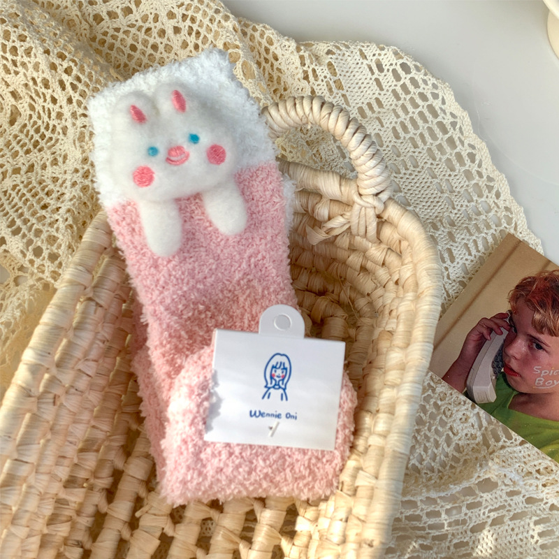 양말 여성 가을과 겨울 새로운 귀여운 인형 컬렉션 산호 양털 튜브 양말 두꺼운 따뜻한 집 수면 양말 도매스토어 가기