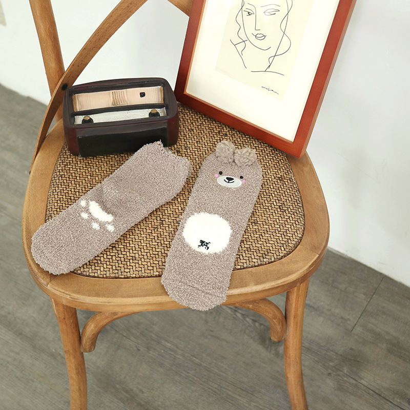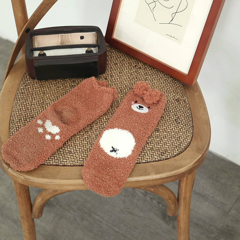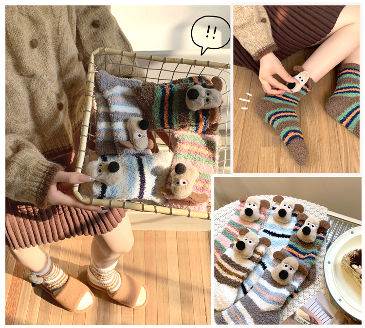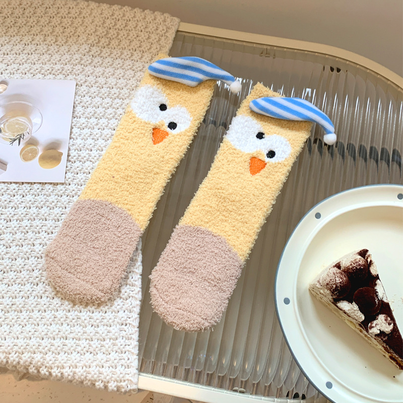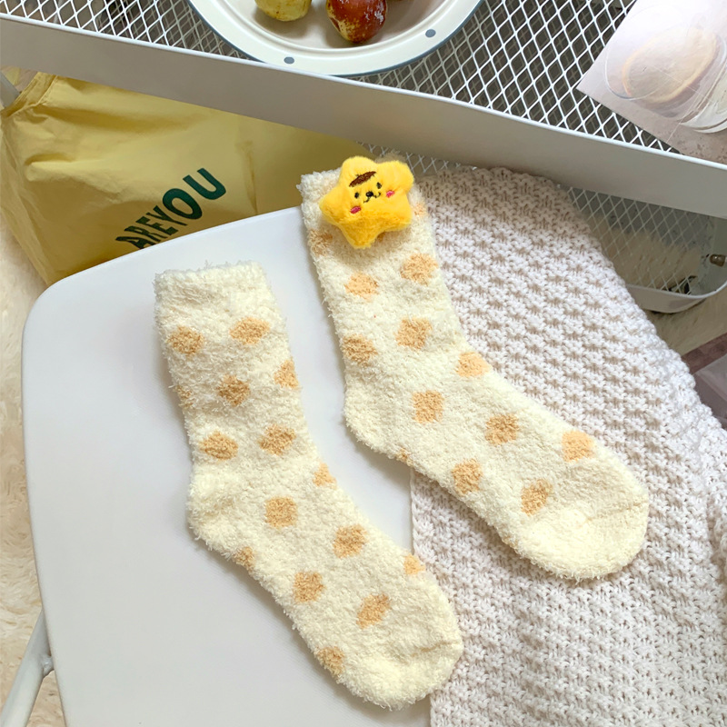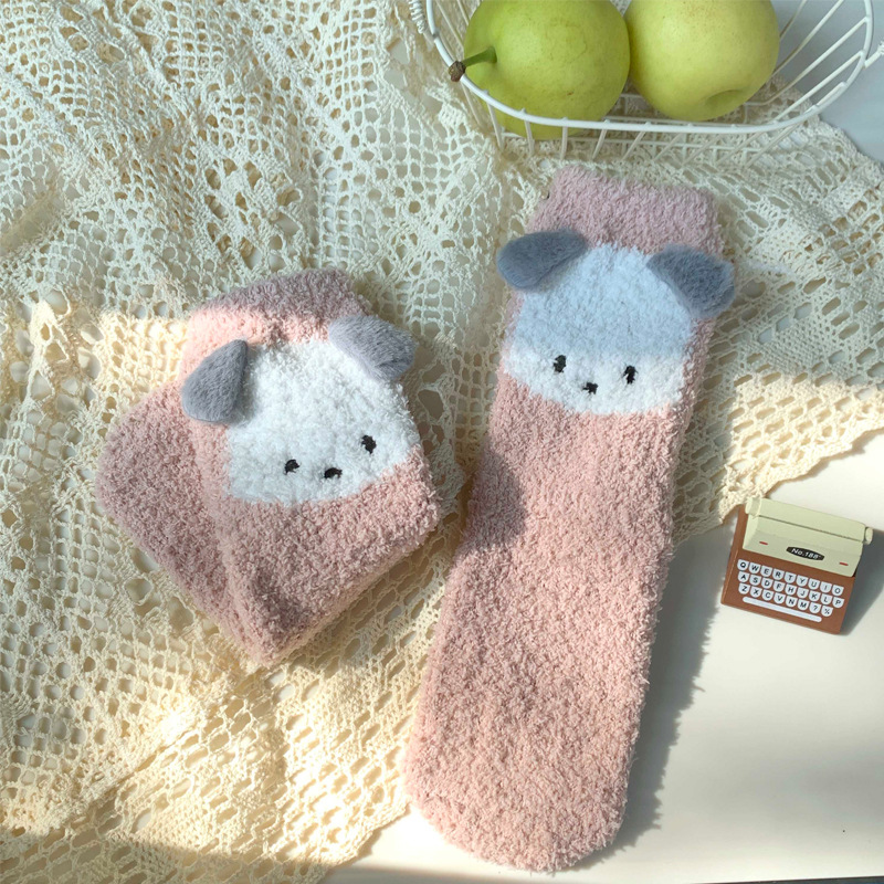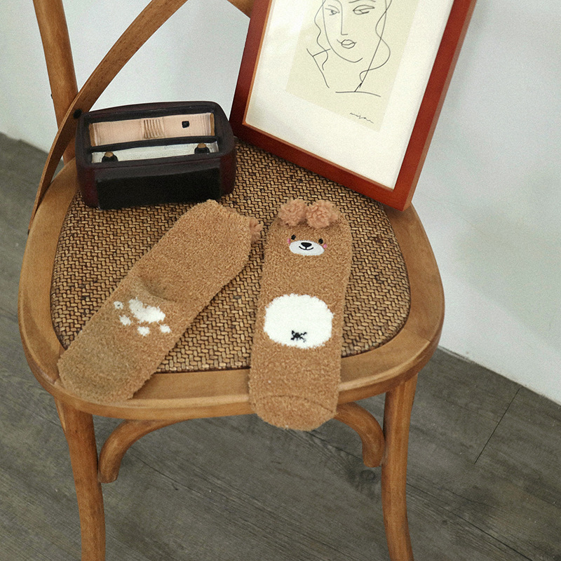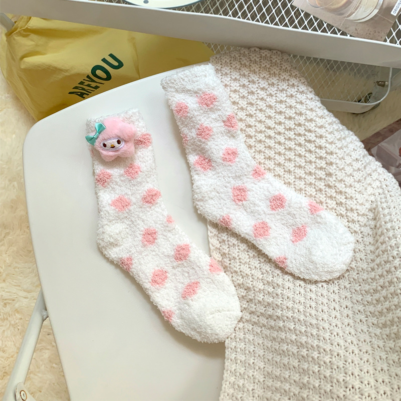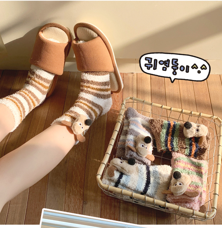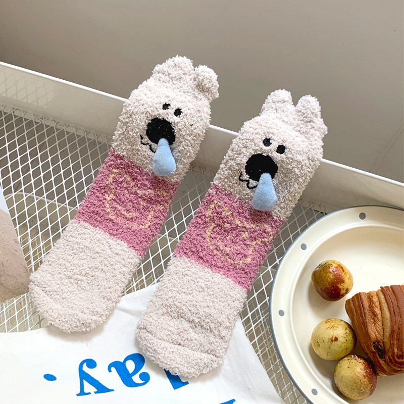 양말 여성 가을과 겨울 새로운 귀여운 인형 컬렉션 산호 양털 튜브 양말 두꺼운 따뜻한 집 수면 양말 도매