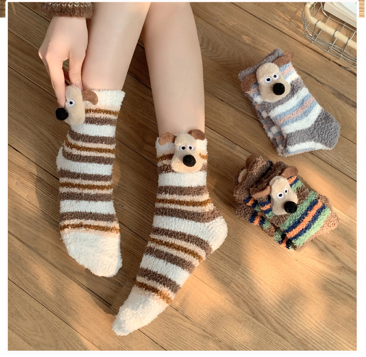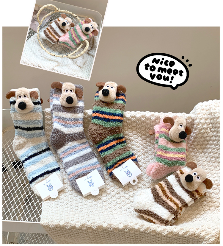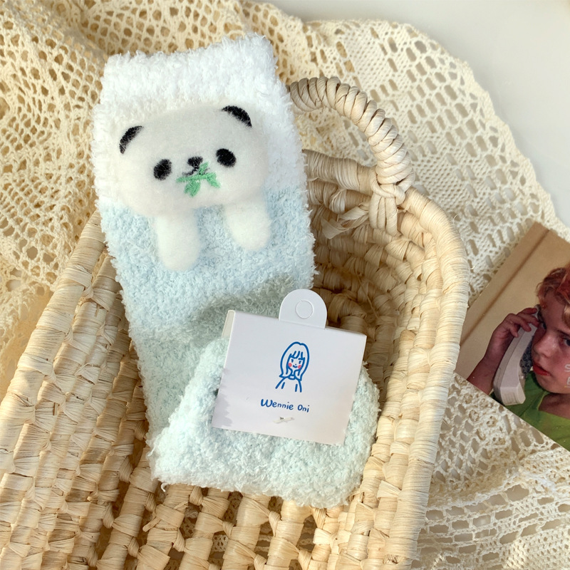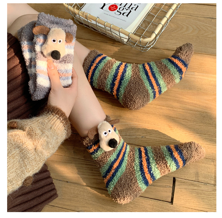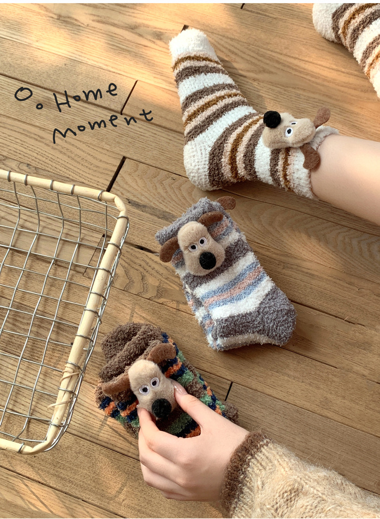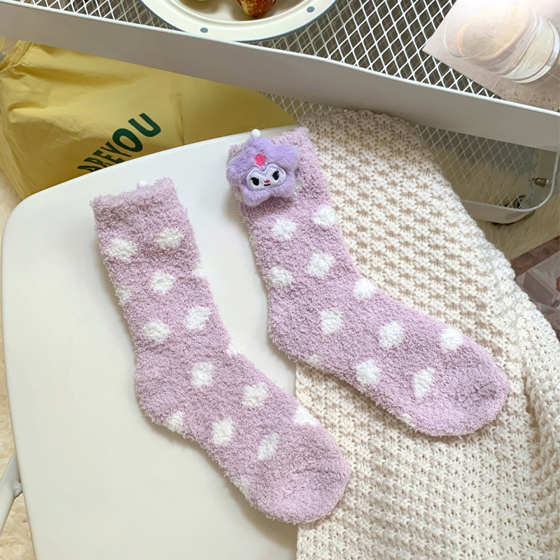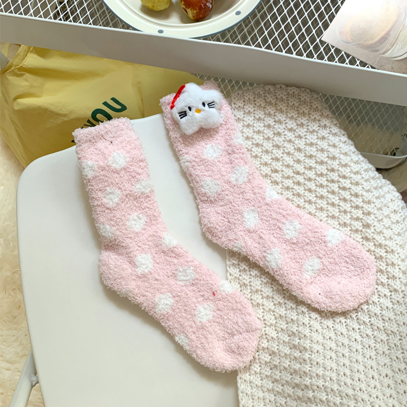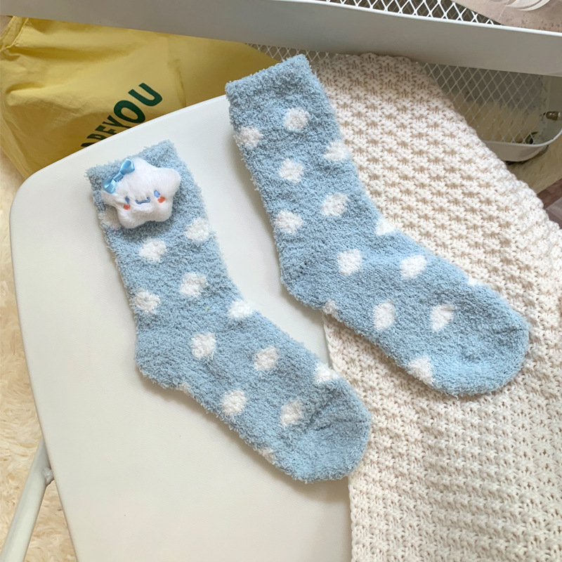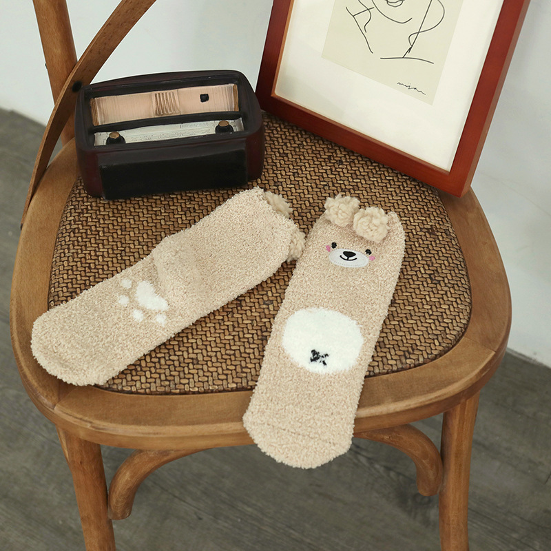 양말 여성 가을과 겨울 새로운 귀여운 인형 컬렉션 산호 양털 튜브 양말 두꺼운 따뜻한 집 수면 양말 도매