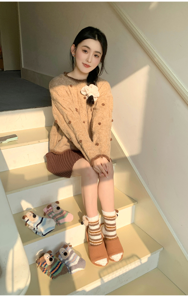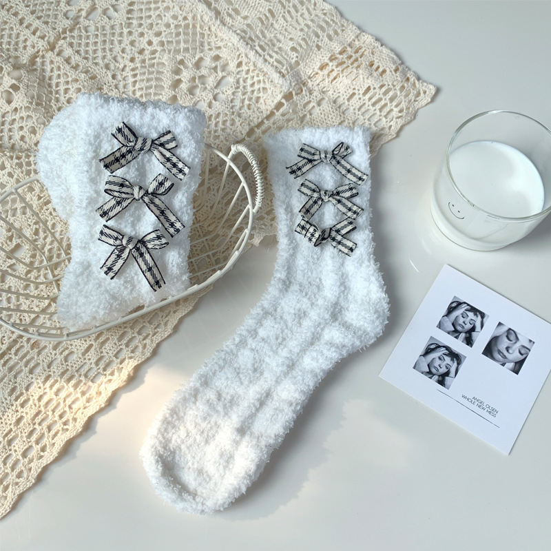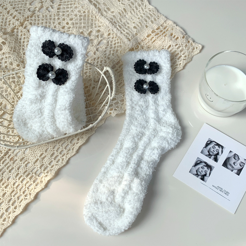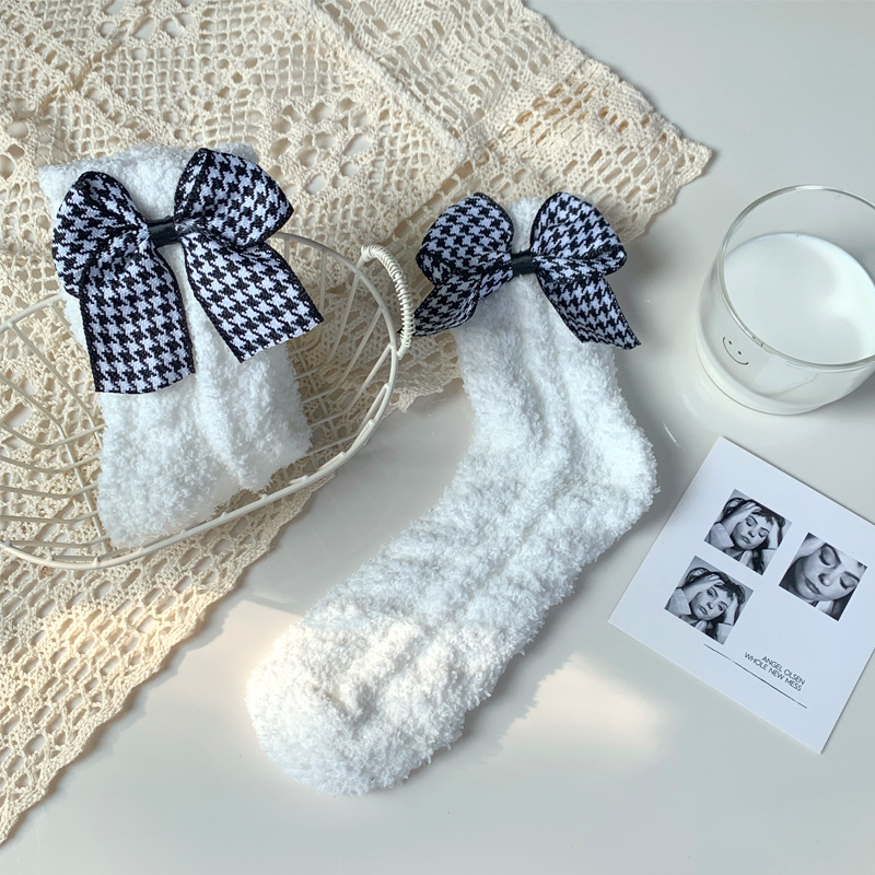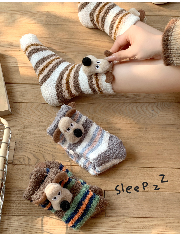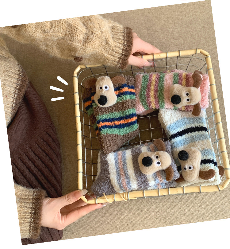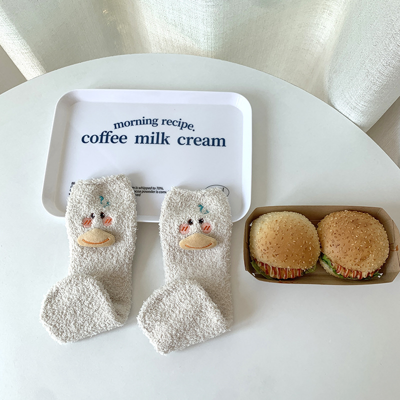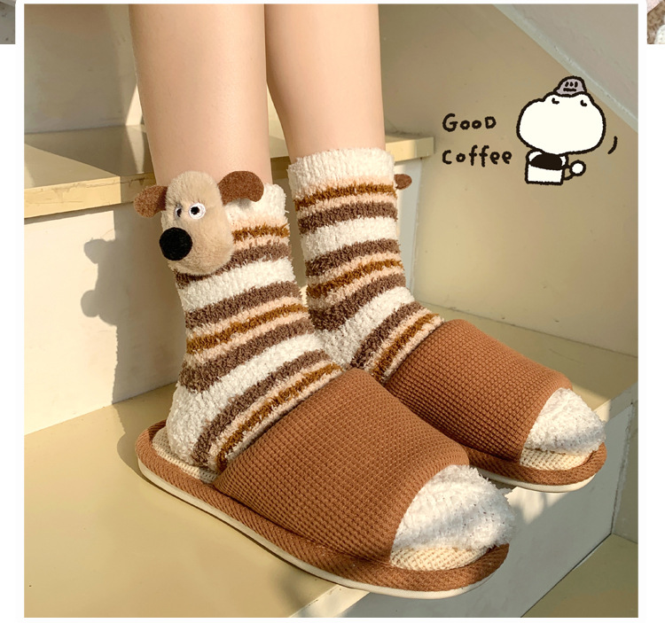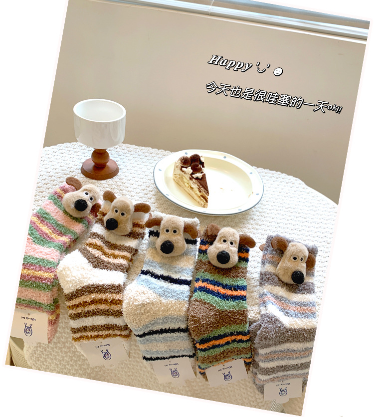 양말 여성 가을과 겨울 새로운 귀여운 인형 컬렉션 산호 양털 튜브 양말 두꺼운 따뜻한 집 수면 양말 도매