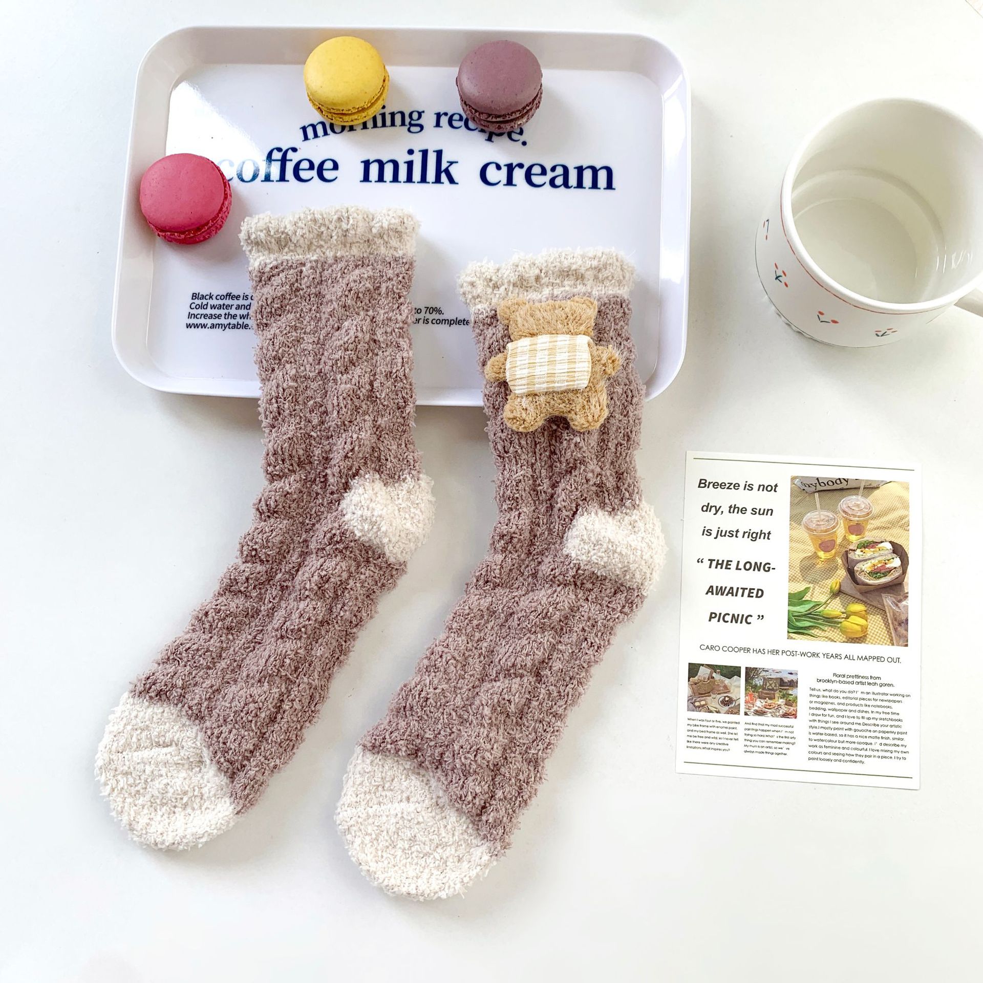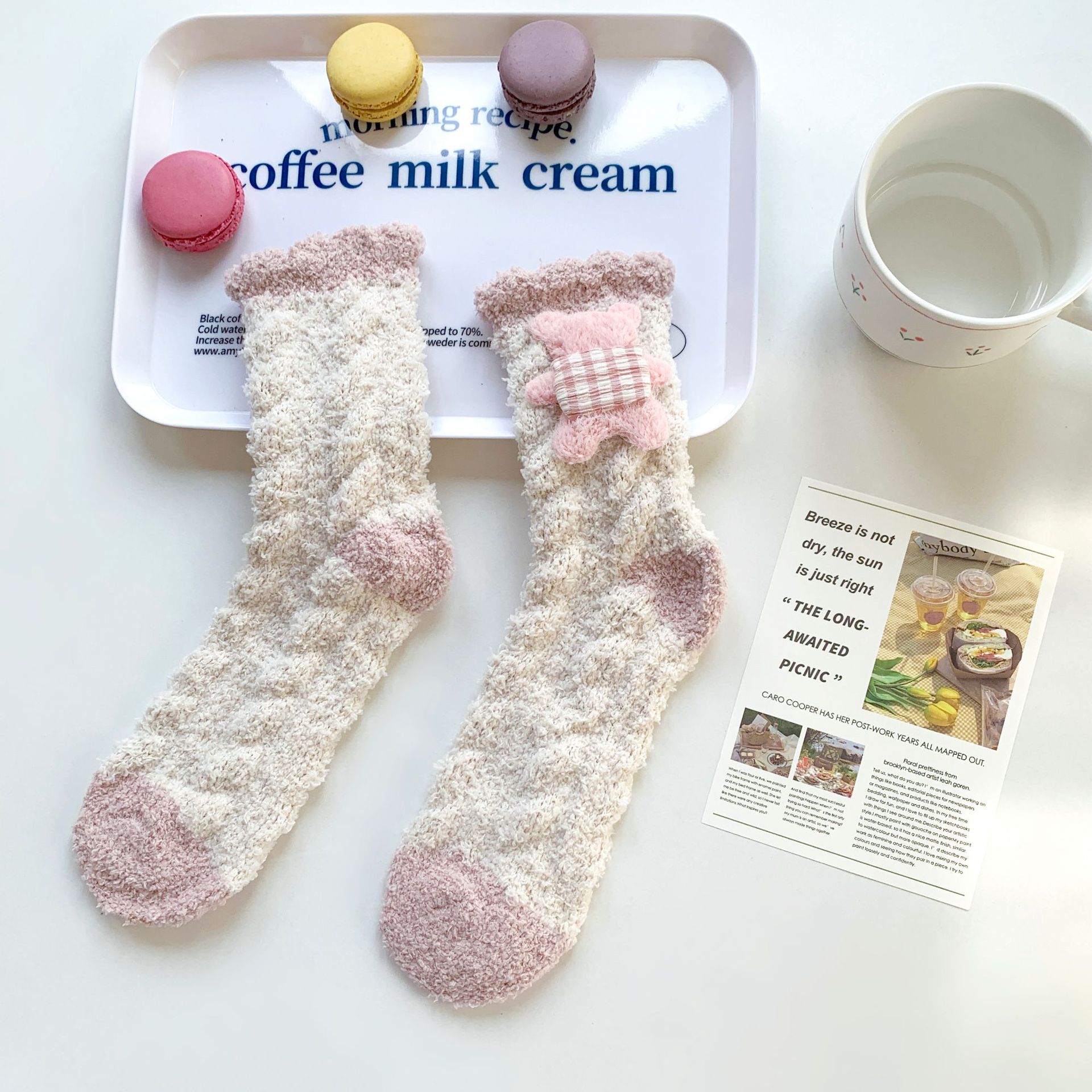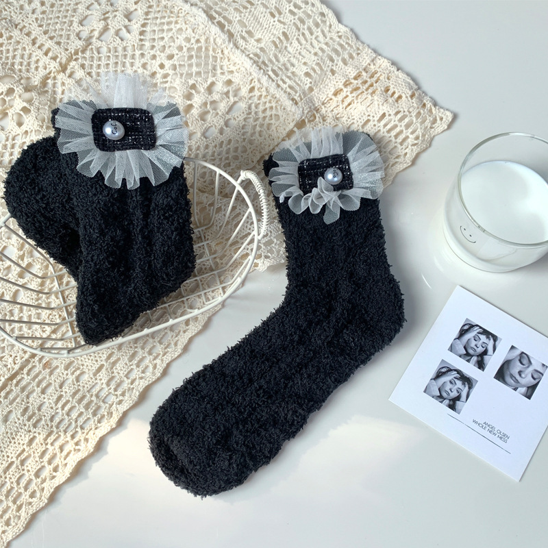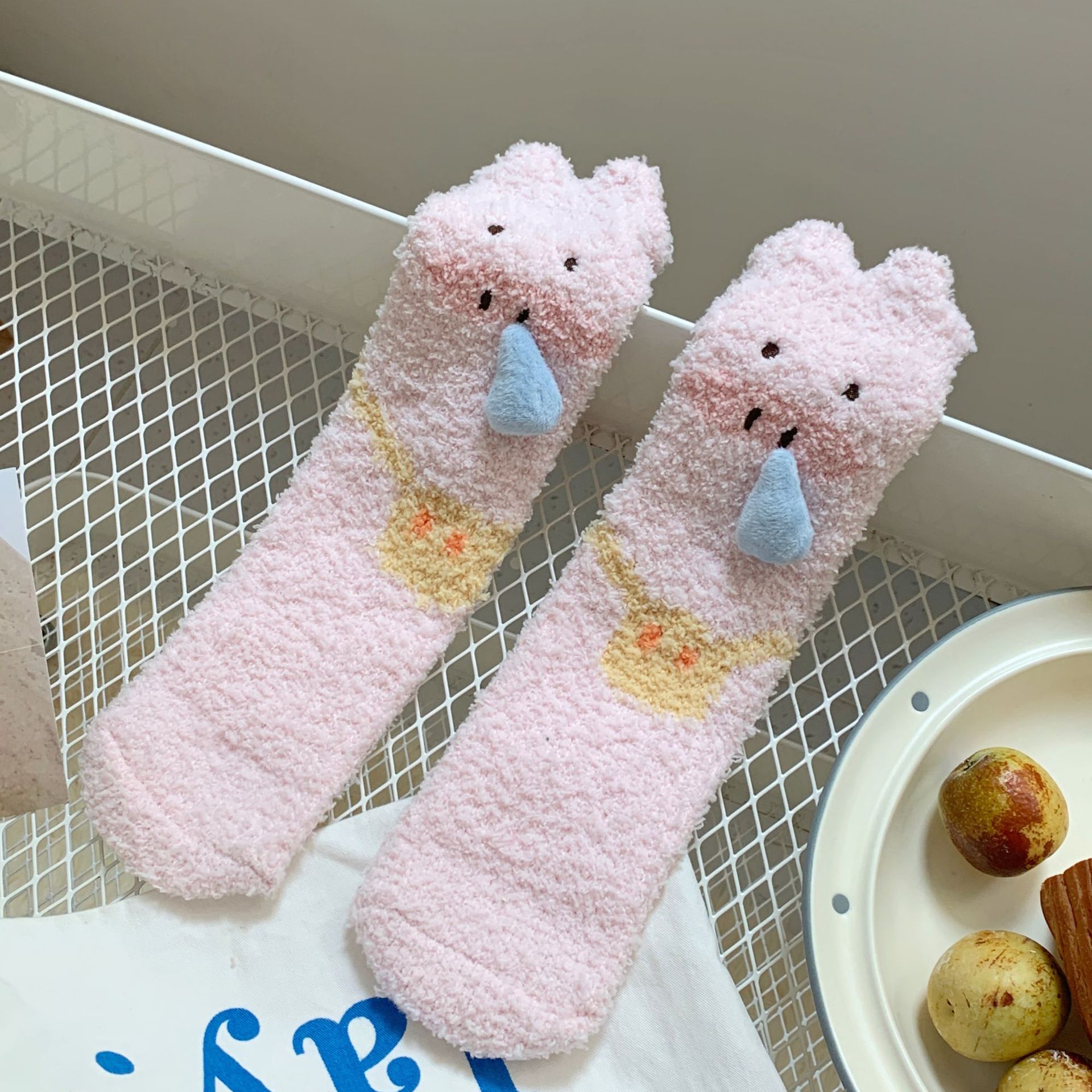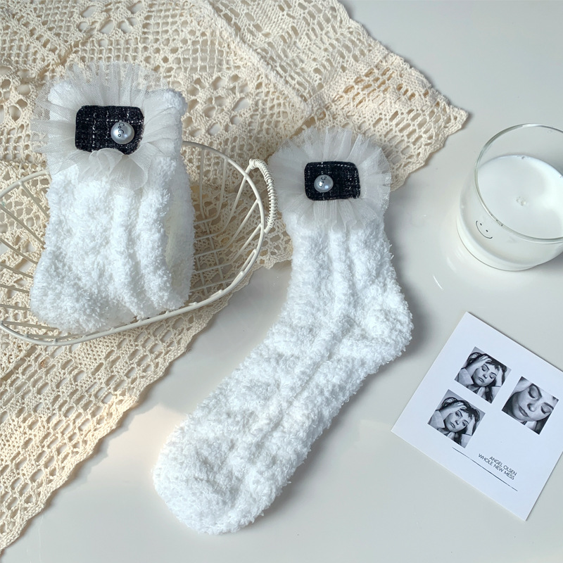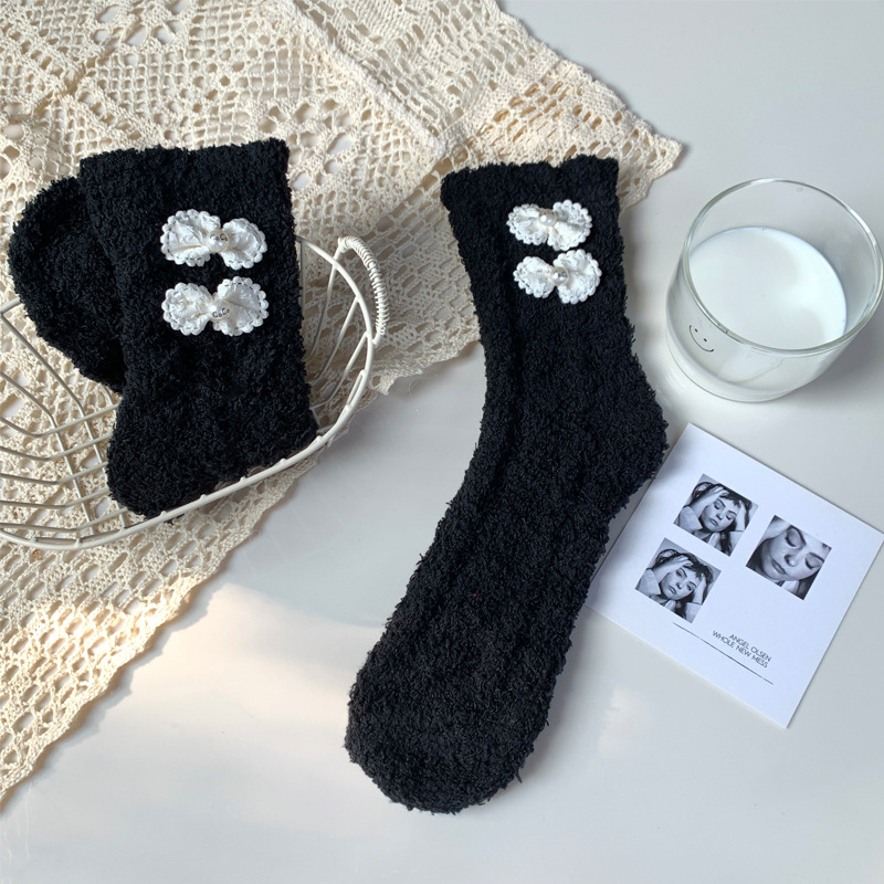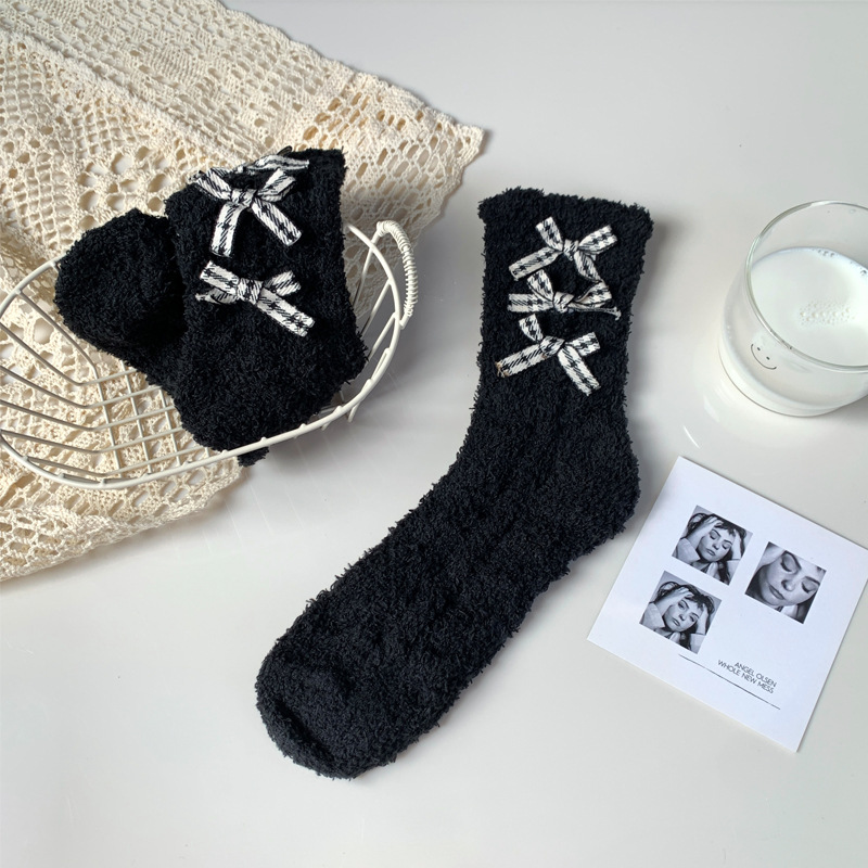 양말 여성 가을과 겨울 새로운 귀여운 인형 컬렉션 산호 양털 튜브 양말 두꺼운 따뜻한 집 수면 양말 도매