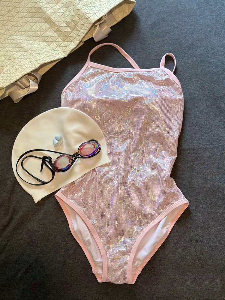 레이싱 수영복 여성용 핑크 반짝이는 원피스 삼각 수영복 고급스러운 2025년 신상 수영복
