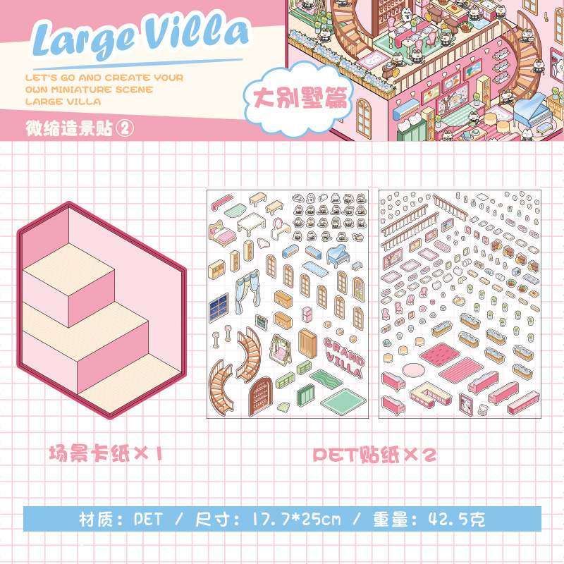 语闲pet立体微缩大造景贴纸 趣味世界系列视觉3D小屋儿童手账拼贴 语闲pet中号微缩造景贴纸 幸福小镇系列3D堆叠立体小屋手账趣味贴 语闲pet微缩造景贴纸书 定格快乐系列视觉3D立体小屋女孩手账玩具