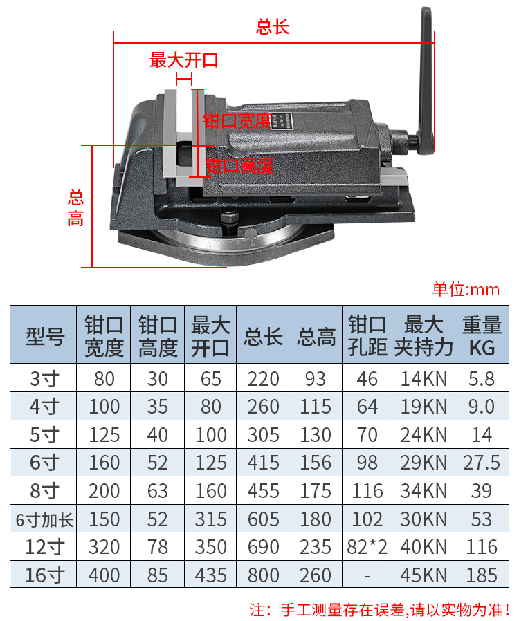 무거운 의무 QH 밀링 기계 평평한 턱 플라이어 처리 바이스 3 인치 4 인치 5 인치 6 인치 8 인치 도매스토어 가기