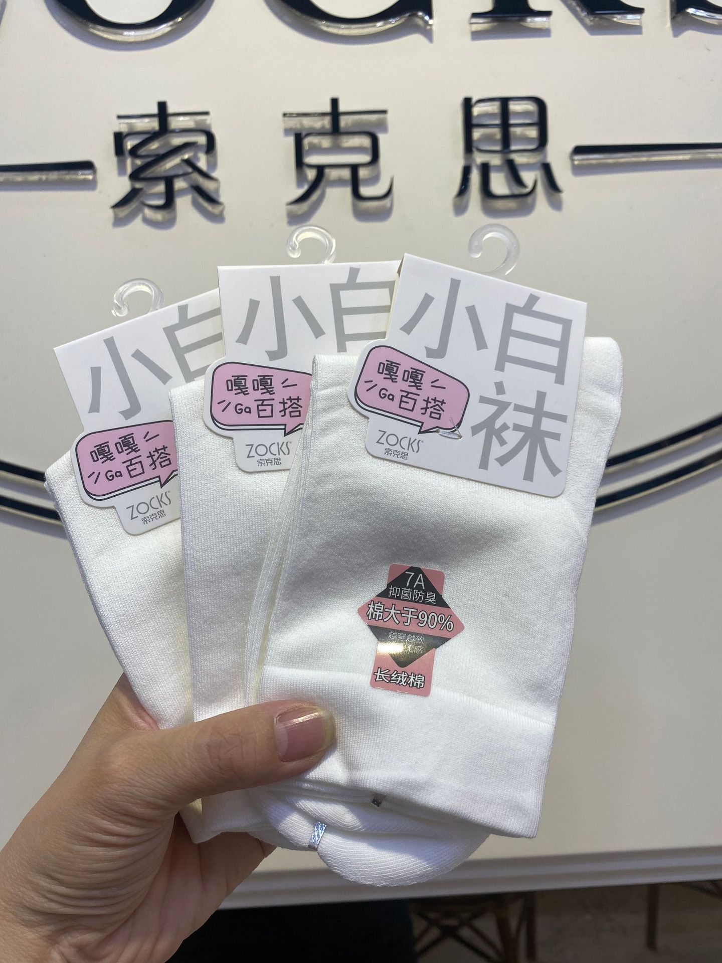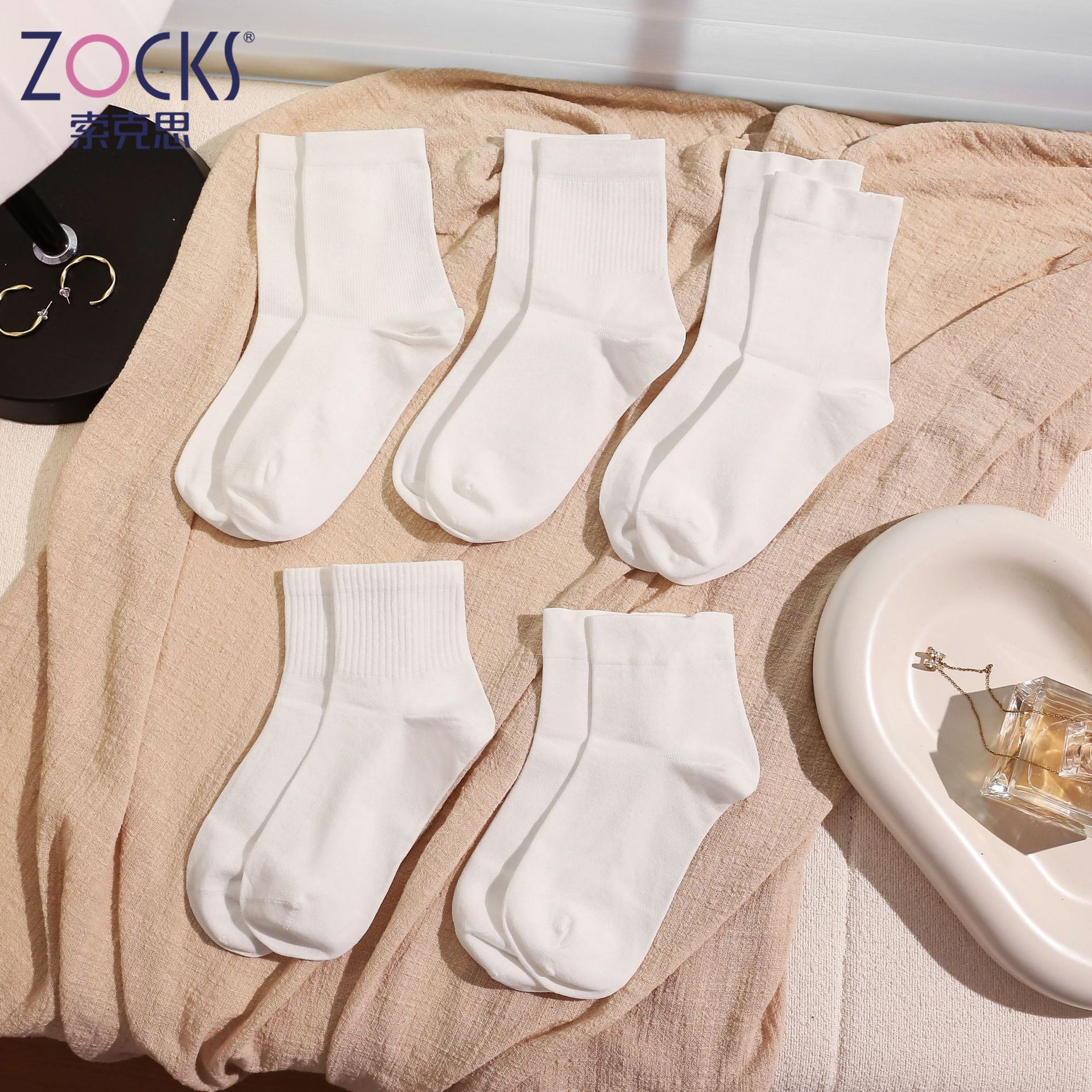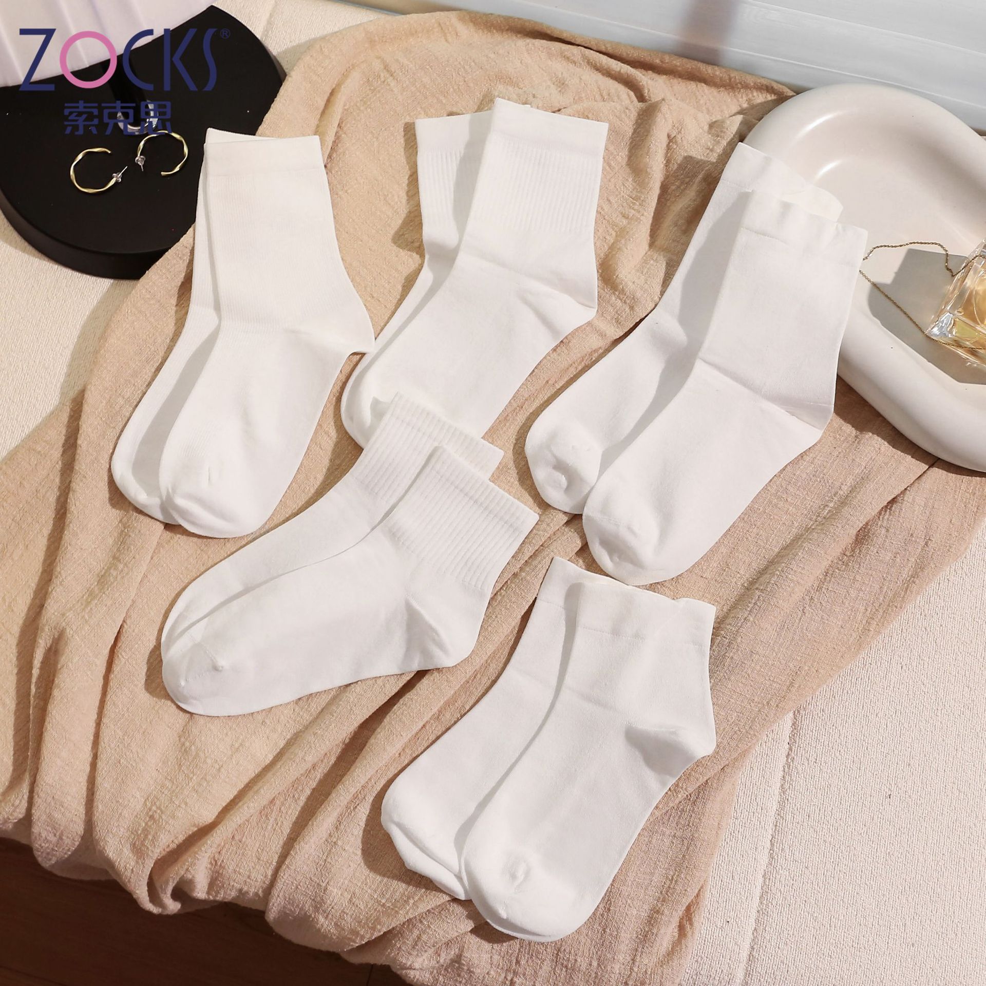 Zocks 솔리드 컬러 작은 흰색 양말 탈취제 및 땀 흡수 7A 항균 릴리 코튼 양말 스택 양말 통기성 여성용 미드 튜브 양말스토어 가기