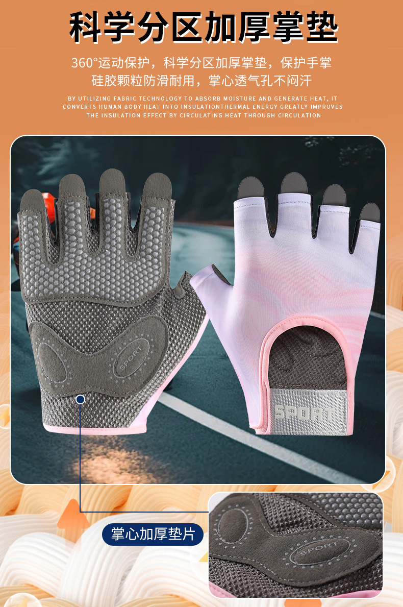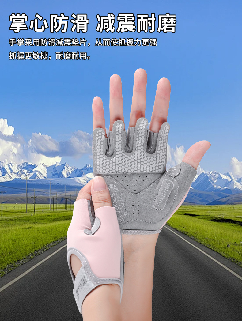 새로운 도매 반 손가락 스포츠 장갑 피트니스 충격 흡수 미끄럼 방지 누에 고치 장갑 여성을위한 높은 탄성 통기성 반 손가락 장갑