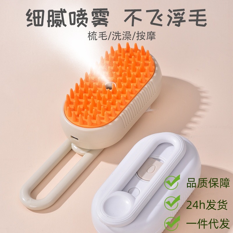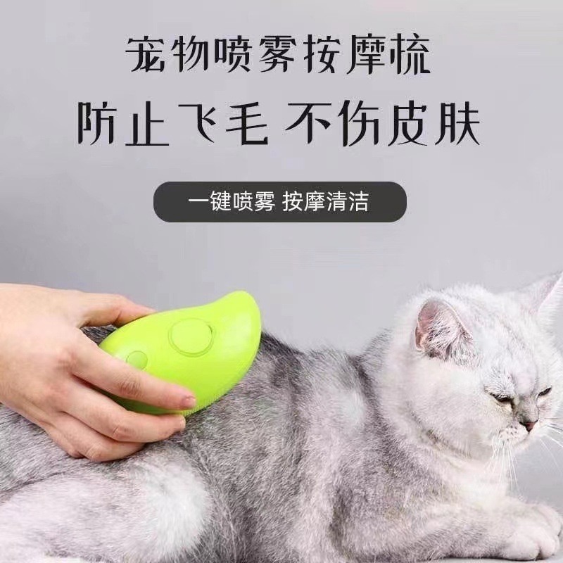 새로운 크로스보더 고양이와 강아지 애완동물 전기 스프레이 마사지 애완동물 빗, 원터치 스프레이로 털 날림 방지, 목욕 브러시로 털 제거스토어 가기