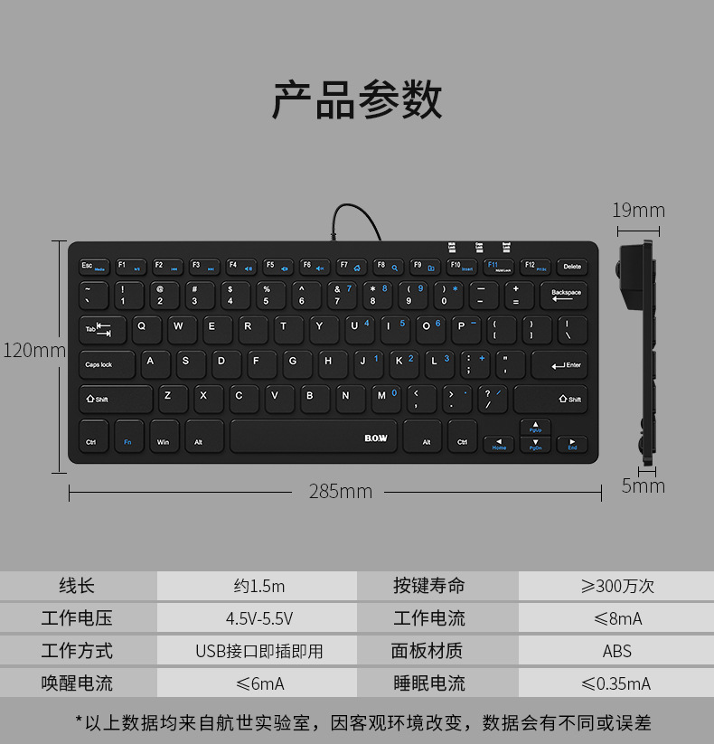 B. O.W 유선 키보드 HW098A 외부 노트북 음소거 빛 음성 usb 사무실 입력 소스 공장