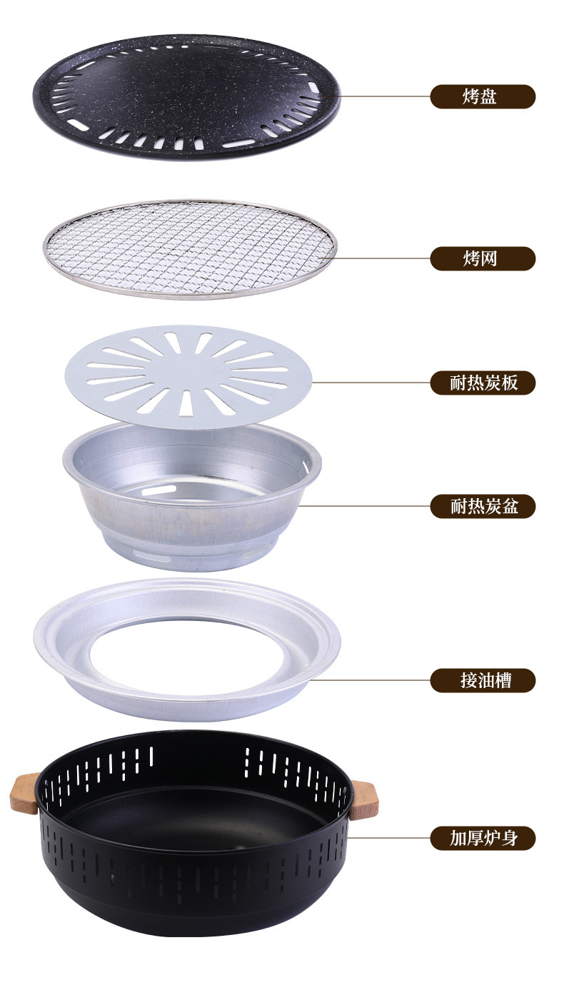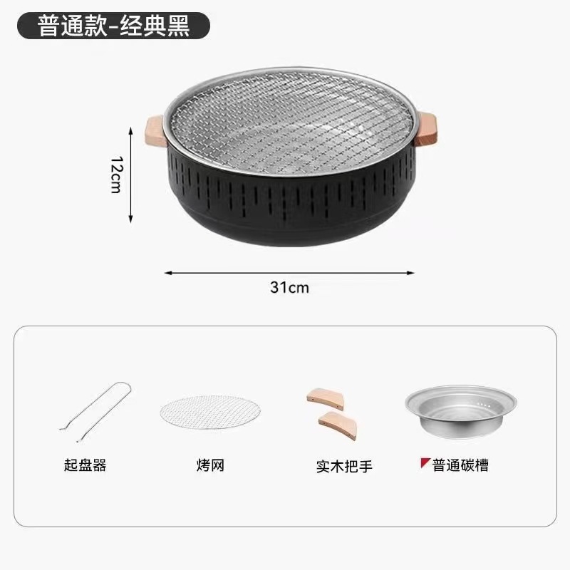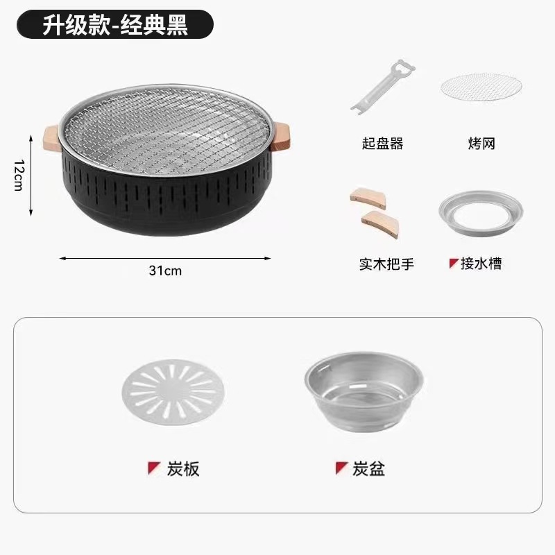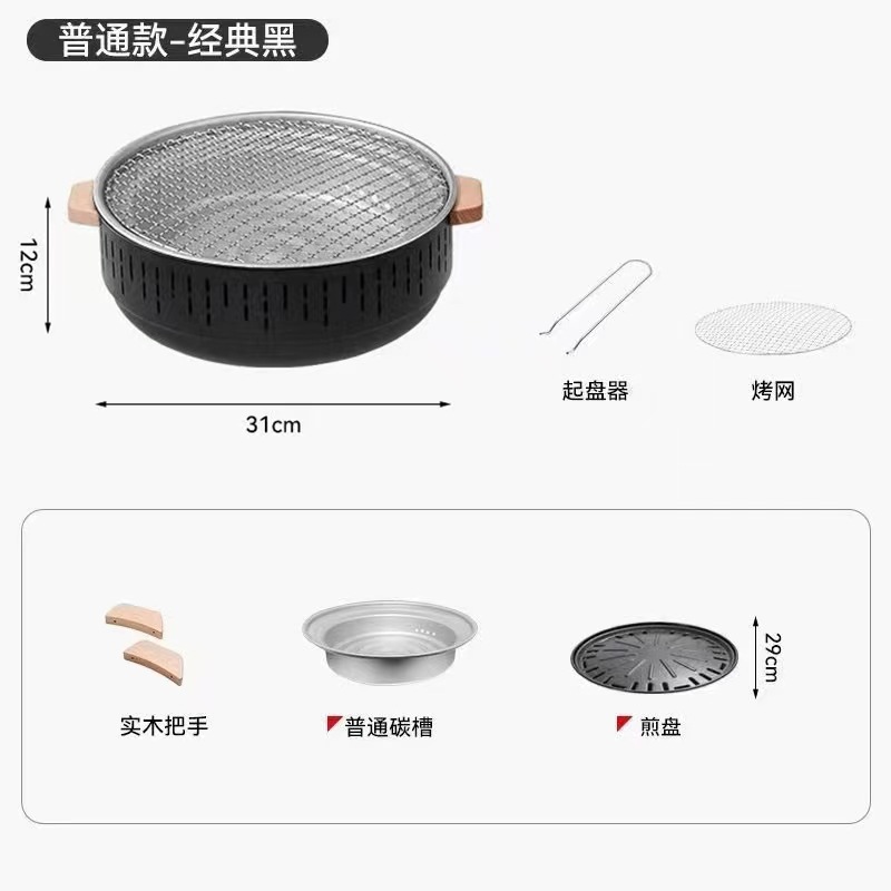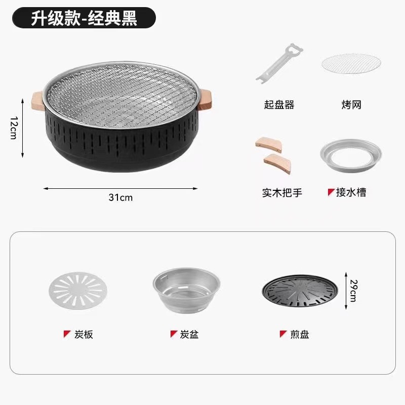 • 블랙 난로 원목 손잡이 기본 모델 + 접시 리프터 + 바비큐 네트 + 프라이팬