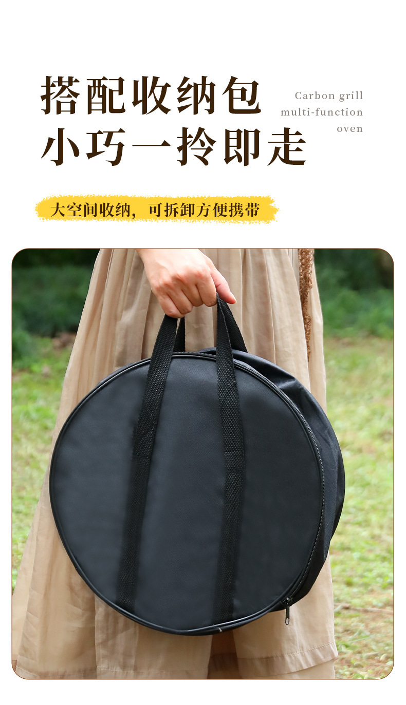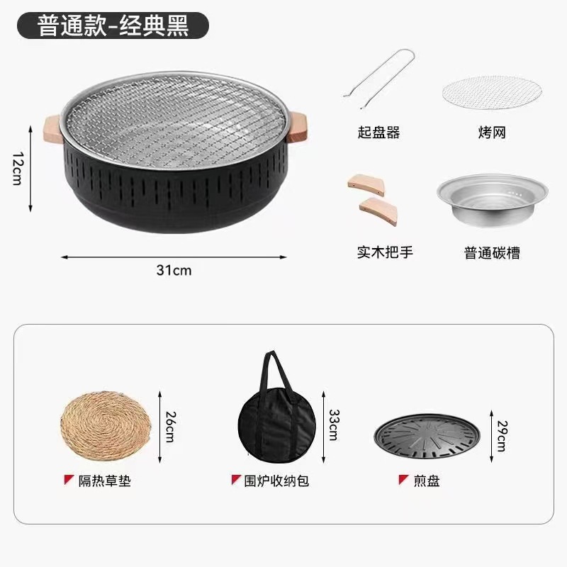 • 검정색 난로 주변 원목 손잡이 + 접시 리프터 + 바베큐 그물 + 프라이팬 + 단열 매트 + 보관 가방