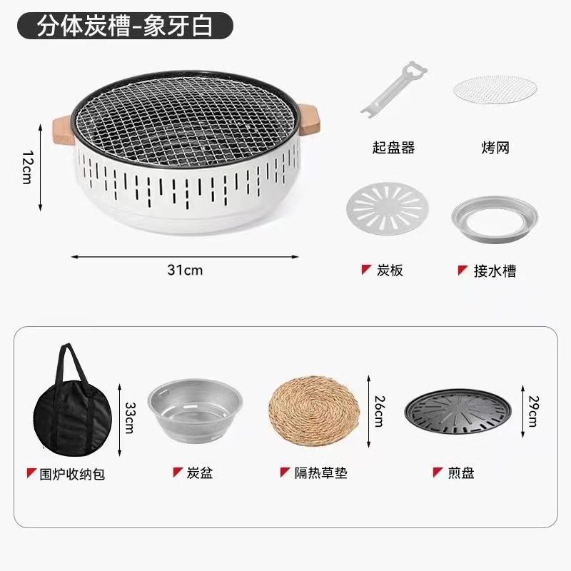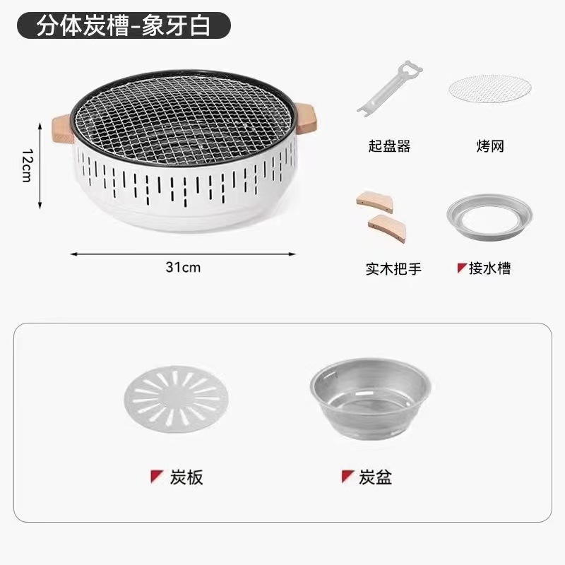 • 흰색 난로 원목 손잡이 + 접시 리프터 + 바비큐 네트